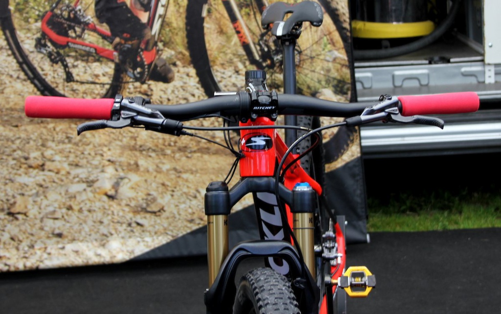 去年,尼诺在比赛中使用了他经典的Syncros一体把组。在比赛中,他的设定为680mm宽和-30°的把立角度。