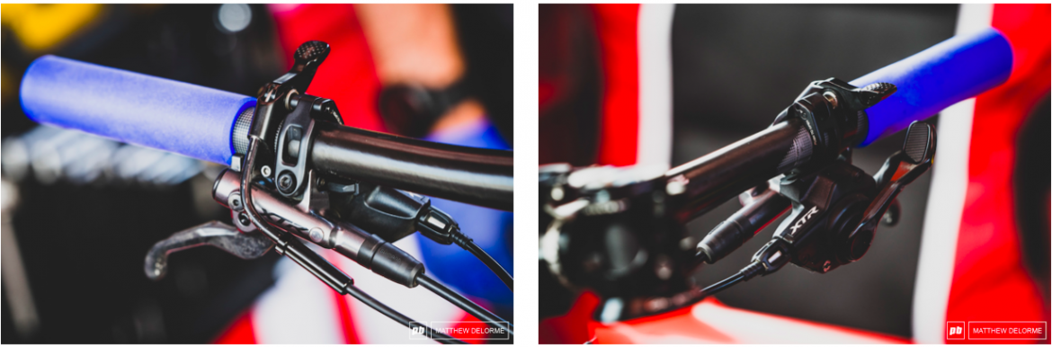 今年的比赛他选择了全系FSA KFX把组,还有非常亮眼的亮橙色的泡沫把套。维克托喜欢一直轻点着刹把,有需要时可以随时敏捷的反应,今年他也收获了首个山地世界杯冠军。