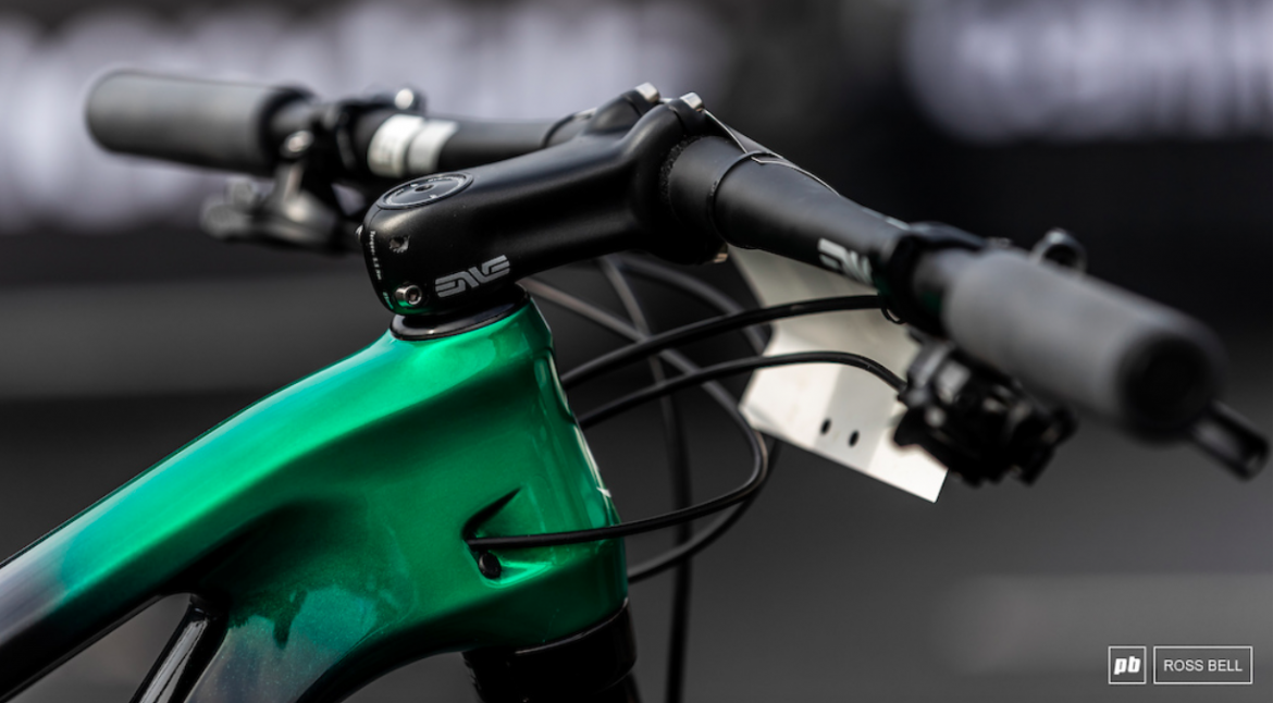 去年,曼纽尔Nove Mesto进行了两轮比赛,均使用Enve 730mm 9°后掠的碳把,以及85mm长,-10°的Enve把立。