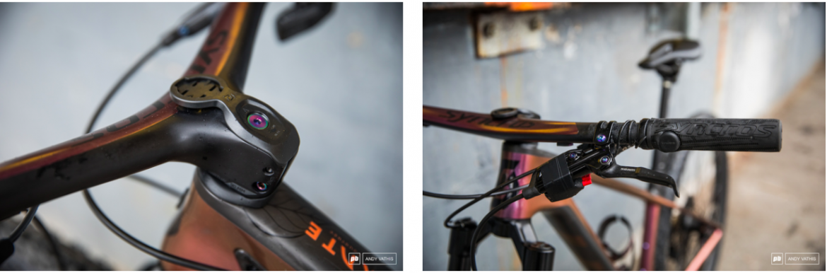 安妮今年在阿尔布施塔特使用了一体把组,我们仅知道这套把组来自前进复合材料公司(Bike Ahead Composites)设计,它看起来还仍然像半成品,没有公开发布。有趣的是,安妮装有指拨但另外有装了卫星AXS按钮用来控制升降座管。