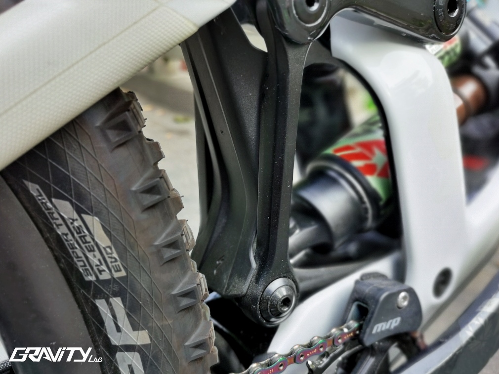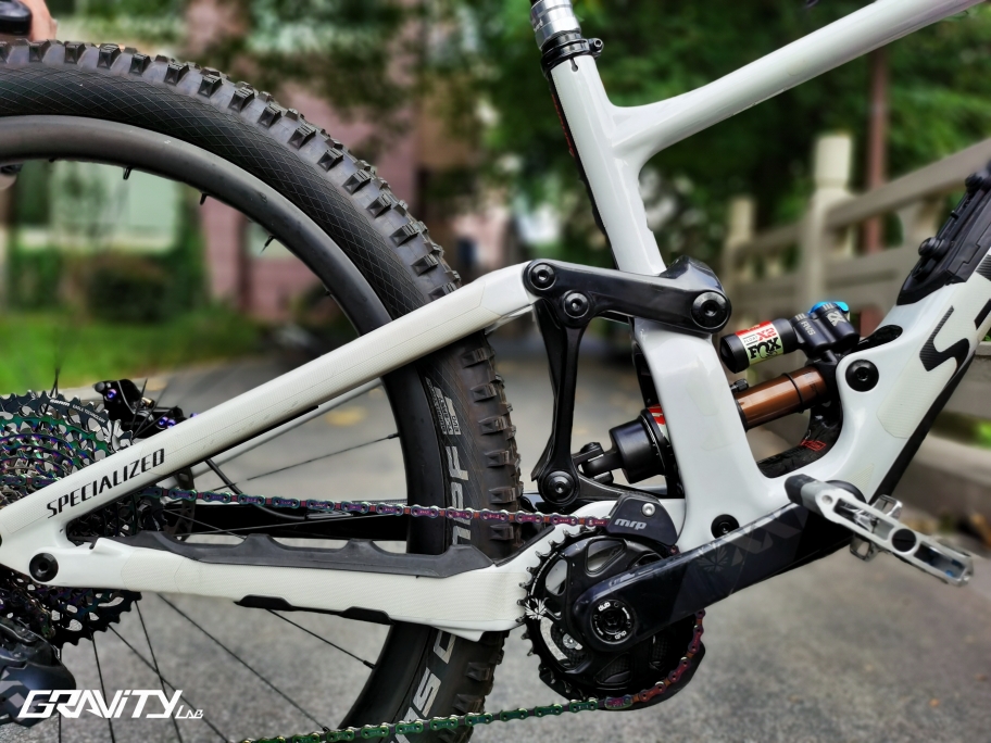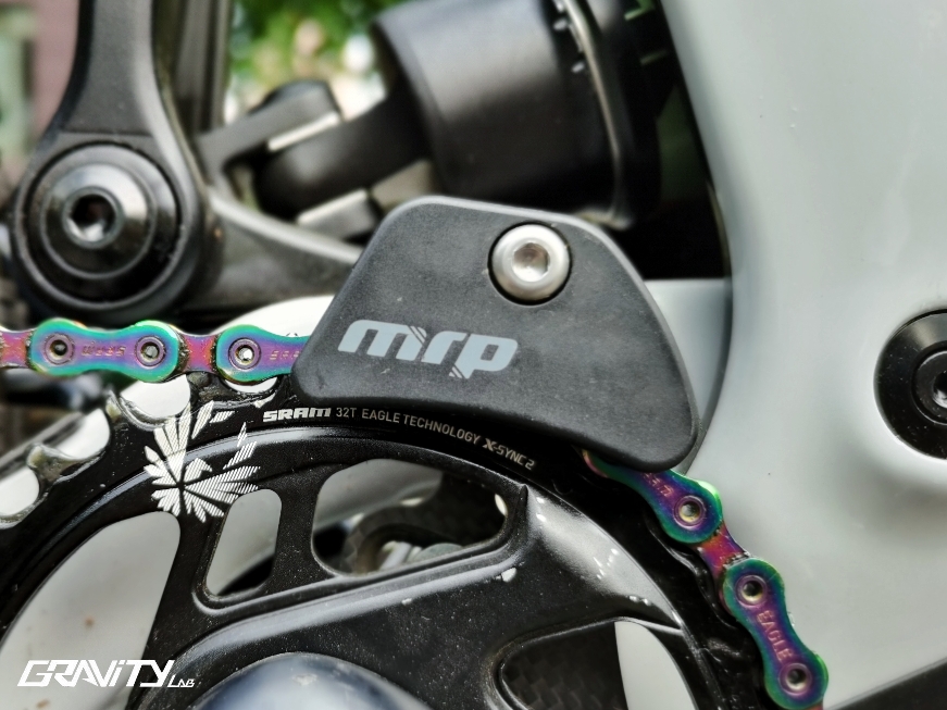 SRAM的Eagle系列套件基本没有掉链的可能,但作为台标准的Enduro车型,为了确保万无一失,车主为其安装了Mrp的导链器。