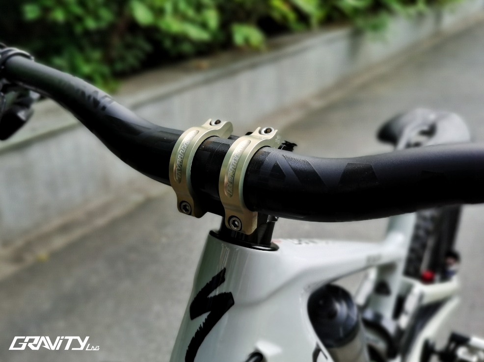 把组方面,车主使用的是renthal 35mm的把立搭配SRAM旗下的新锐把横。具笔者所知,由于几何的设定一直达不到车主想要的效果,不同数据的把横也换了好几根了....似乎是“铁打的把立,流水的把横”。