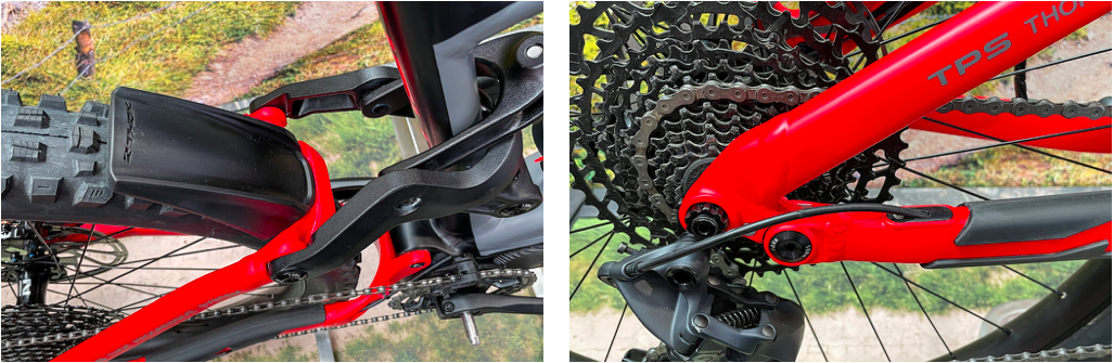 大量的防护扩展减少了飞起的石头击中下管和腿部的机会,而且这些扩展护板也可以很容易地拆除。