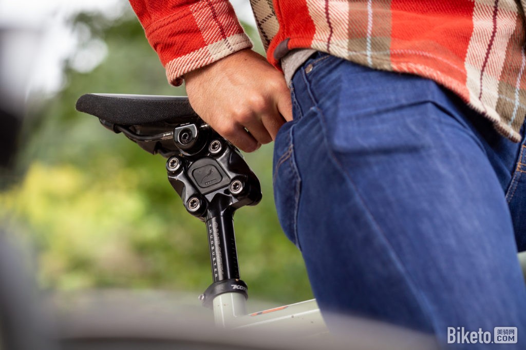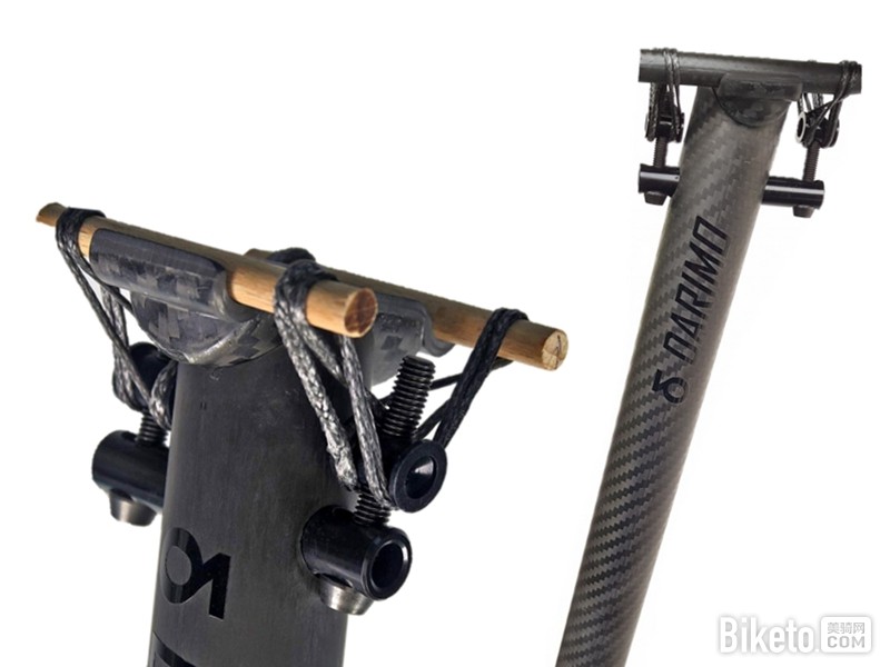 这款座管并不便宜。Caynon利用碳纤维特性,加大自身形变量抵消颠簸反作用力的影响,带来更好的舒适性。座管上面配备了浮动座包夹,减震的时候不会影响座包的角度、