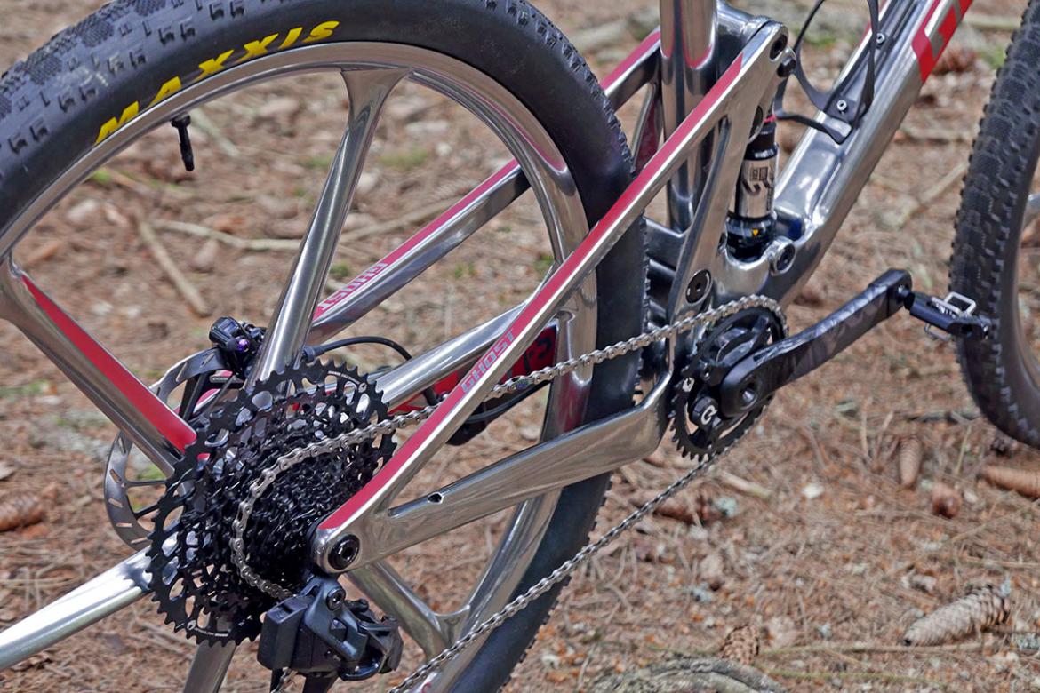 29寸Lector FS的特别之处在于其避震行程是根据车架行程所决定的,所以Tom的这台L号车型用120mm的后胆行程和120mm SID Ultimate前叉相匹配。Ghost基于他们Riot车型得来的数据,将这台车的避震设计称为短四连杆避震,使用更轻的重量和更强的刚性的后三角,再用两个碳纤维连杆衔接在超大密封轴承上。