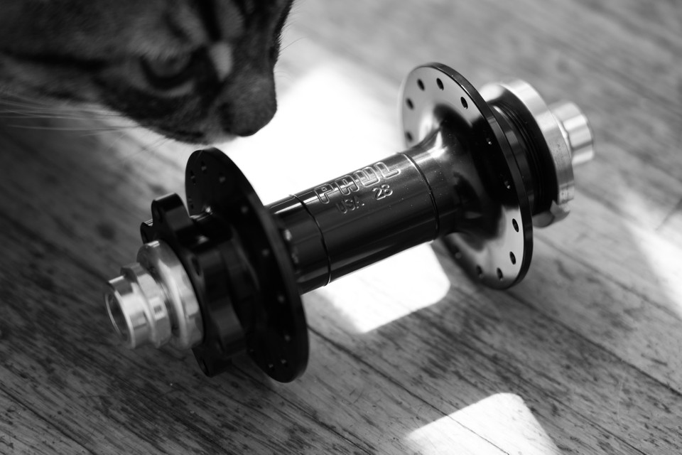“我选择了低调的H Plus Son TB14车圈来让车子看起来更优雅,发电机采用隐藏走线,后花鼓则是Paul Components WORD ,也是28孔,WORD这个品牌是第一个专门为单速山地车开发花鼓的厂商,始于1996年。这个花鼓不是很常见,可以使用碟刹,质量也很好,可以满足我的要求。”