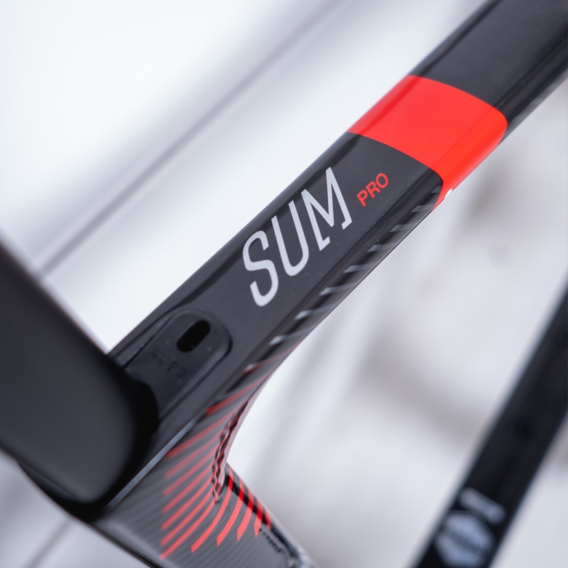 除了全内走线的支持,SUM PRO特色的轻量化沙漏形头管,提供了竞赛级的头管刚性同时还为其减少了30-35%的空气阻力。异形的前叉腿可以将空气从下管转移,使得效率进一步提升。