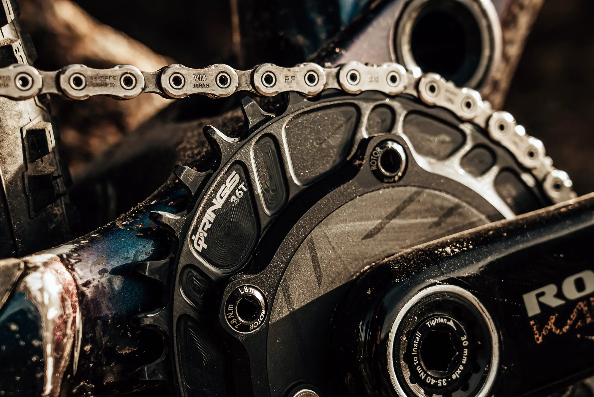 新的MTB INspider搭配100×4 BCD孔径,盘片可以选择30/32/34/36T的圆形和椭圆形。使用Rotor的通用齿设计来与SRAM和Shimano的11速和12速链条配合,能否与最新的T-Type链条配合还在确认中。