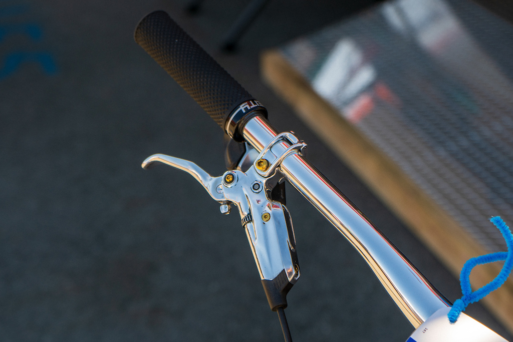 接下来是一些惊艳漂亮的抛光山地车。这些抛光的刹车和把横光亮如镜子。
