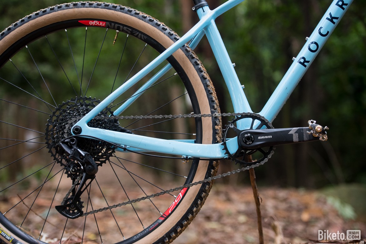 SRAM 全家桶带来精准稳定的变速性能和高效快速的传动效率,指拨变速手感反馈清晰硬朗,11-50T飞轮足以应对诸多上下坡路况,这套传动系统足够稳定和耐造,即使是新手小白也无需担心骑乘中传动系统会出现什么问题。如果能小幅升级将后拨升级为GX Eagle,提升后拨张力,减少链条击打后叉,激烈越野下的信心会更加充足。此外后下叉的透明防护贴在砂土灰尘的侵扰下变成了“土灰色”,略显影响一体美观,如果有更厚实更牢靠的保护贴会更好。