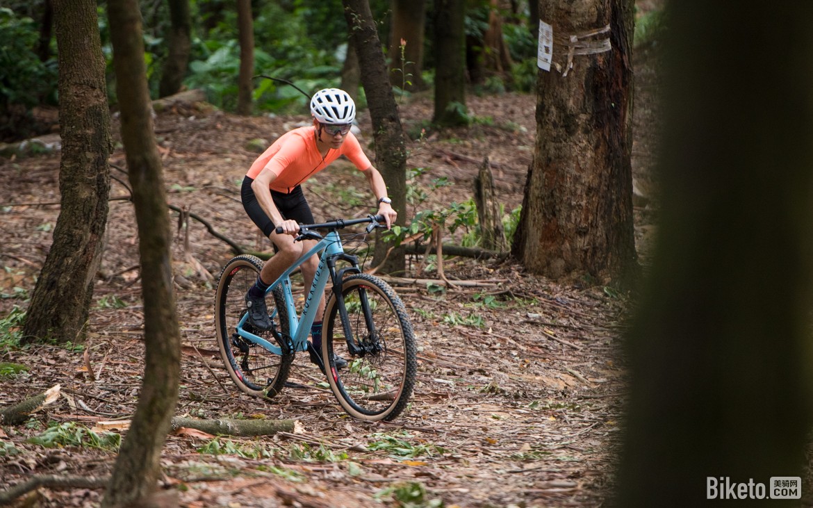 UD堆叠碳纤维车架带来优秀的车架刚性和极佳的踩踏效率,来回几趟的进攻拉扯车架响应令人惊讶,动能传递非常直接。碳纤维车架本身的滤震性大幅提升高速越野中的频繁震动,在较为平直的林间小道,用宽胎低压和碳纤维车架本身的滤震性就能得到相当舒适的骑行体验,整车在林道间高速行进中有着很好的稳定性能。