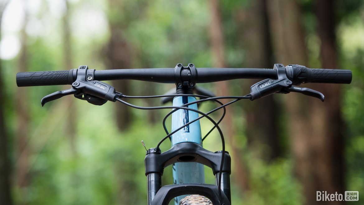 小编用惯了760mm长度的车把一下子回到了680mm多少是有点不适应,短车把在大力摇车的抽拉动作中有着更快的响应,发力直接迅猛,在短时间内瞬间冲出更快的速度。69°的头管角度在-17° 70mm的铝合金把立搭配下使得整车非常适合爬坡,大力摇车上坡也能有很好的支撑性,不会出现翘头等现象,一辆纯正的XC山地车该有的它都有。