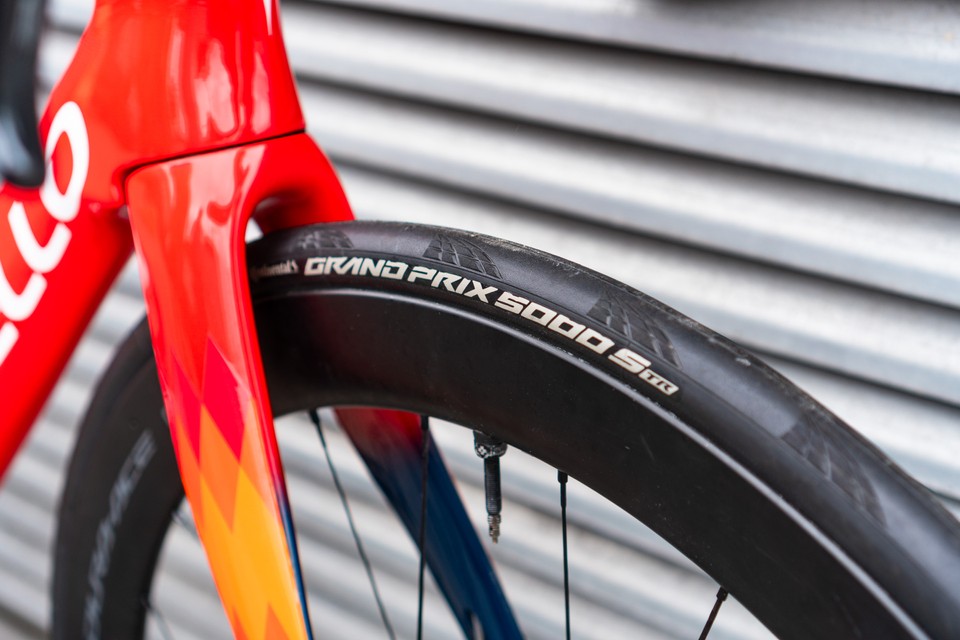 目前,禧玛诺已推出Dura-Ace C50轮组的真空胎版本。贝纳尔在这款轮组上安装的是Continental Grand Prix 5000 S TR真空胎,前轮是25c,后轮则是28c。