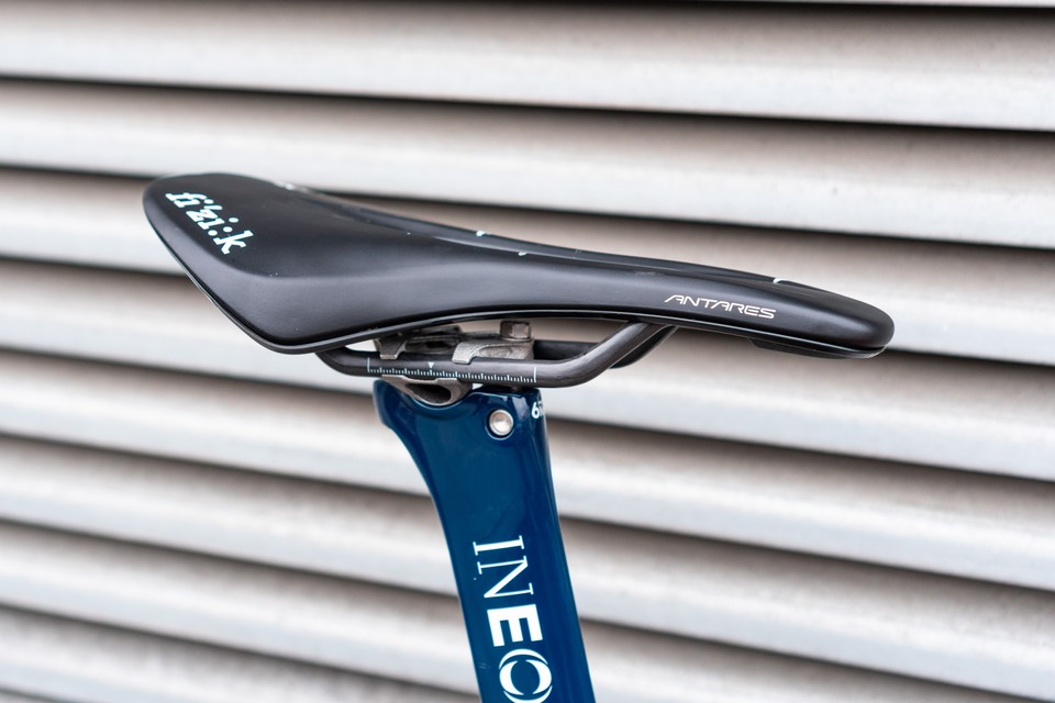 这辆车上的其它部件包括,最新款的Fizik Antares R1 Versus Evo车座,带有贝纳尔个人标记的3D打印钛夹器。