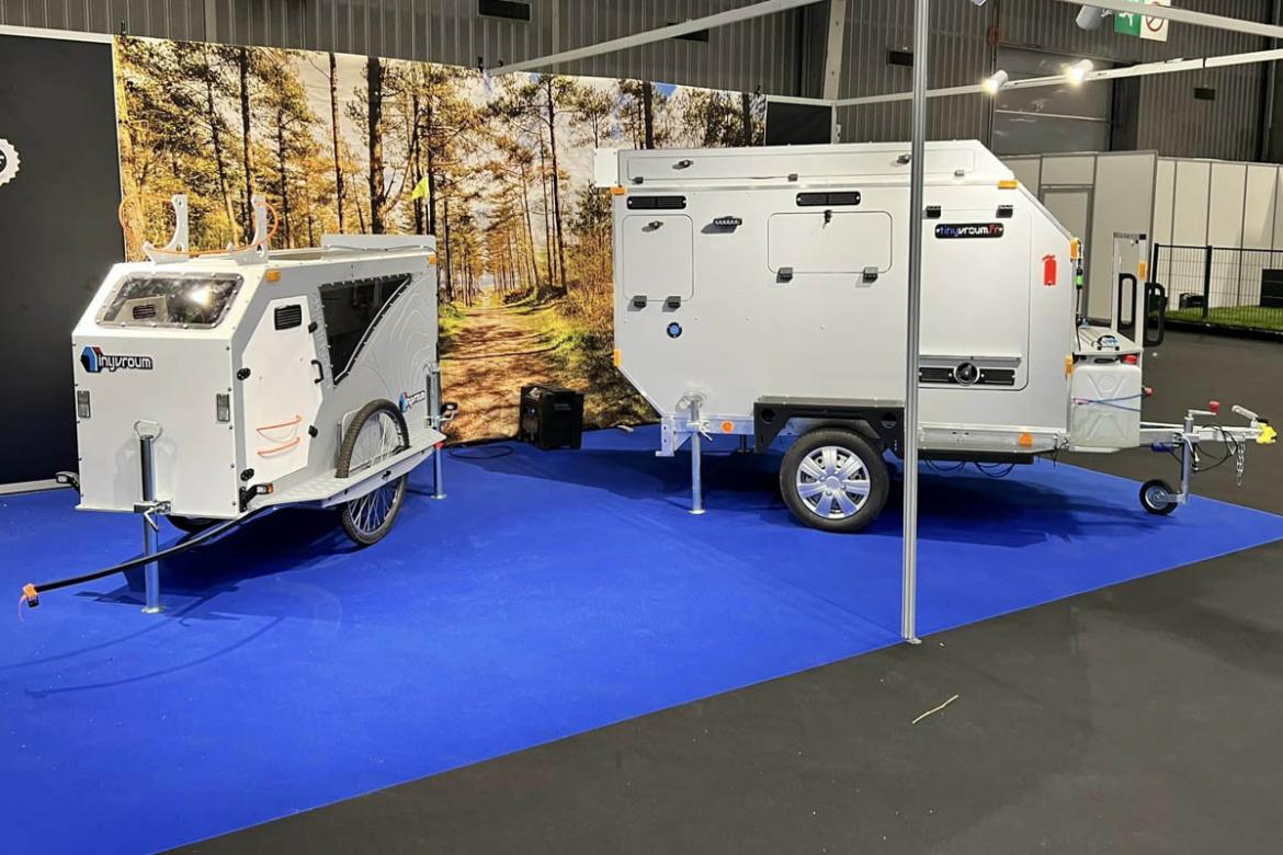 Tinyvroum电助力露营拖车:两轮、可淋浴、投影