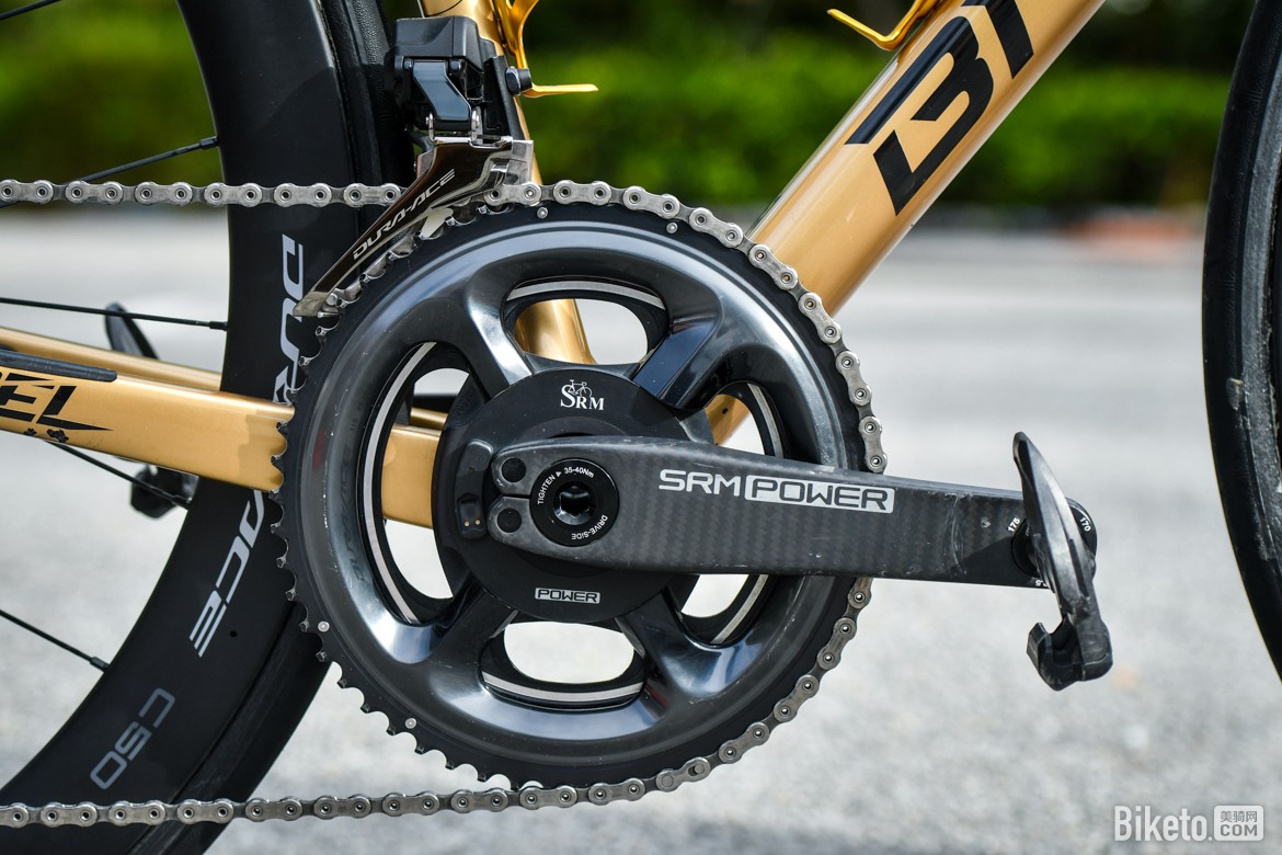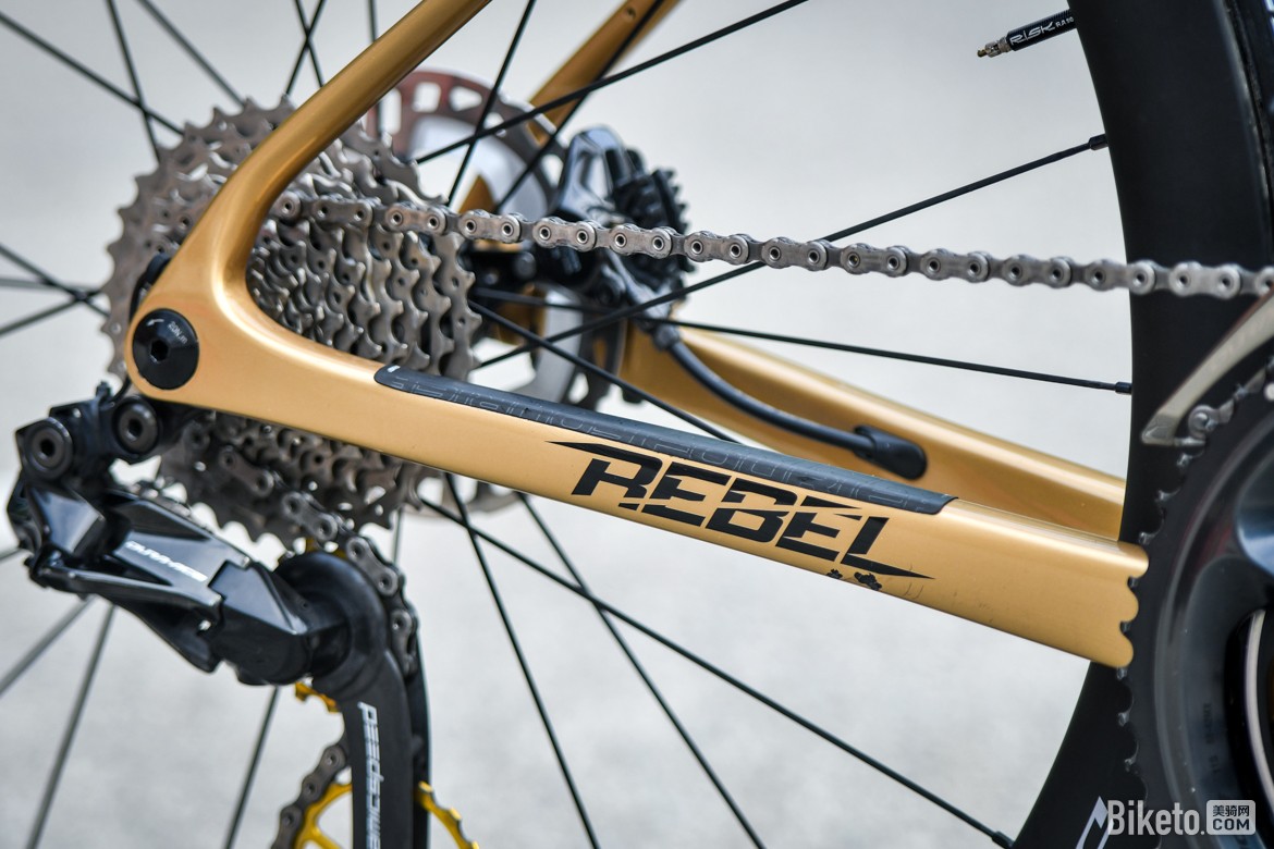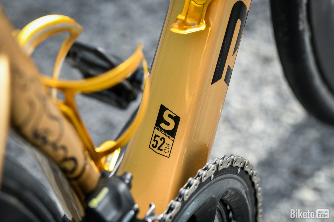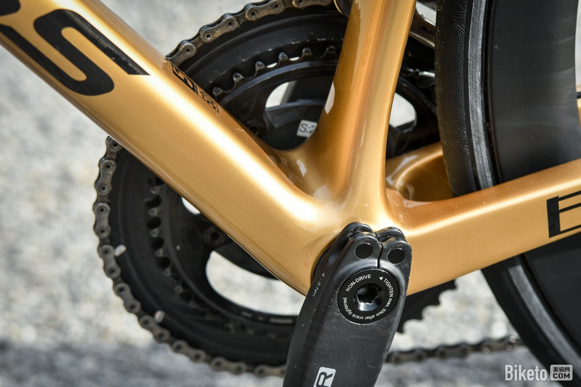 ▲队内标配CeramicSpeed大鸡腿,为了更好地搭配整车涂装,白老师车上的是金色版本