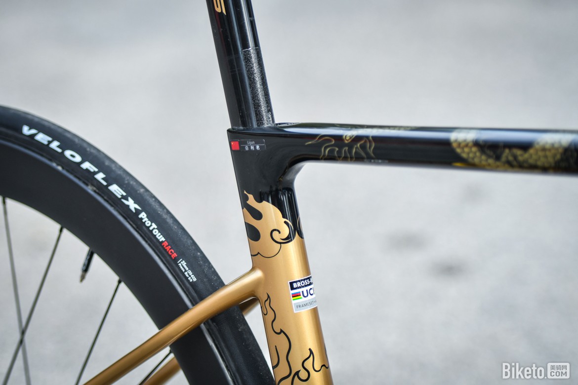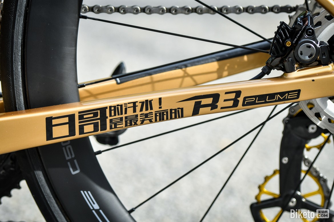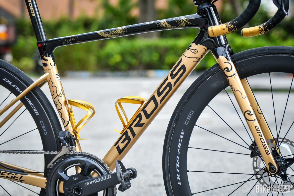白利君是一名有着丰富参赛经验的中国老将,人称龙江白老师,个性鲜明的他现效力于李宁之星洲际自行车队,身体力行帮助新生代车手在实战中快速成长。而作为器材赞助商,BROSS此次为车队参加环兰卡威提供了REBEL PLUME R3,还特别为白利君带来了定制版涂装,接下来就让我们一同观赏这台“金龙”战车。