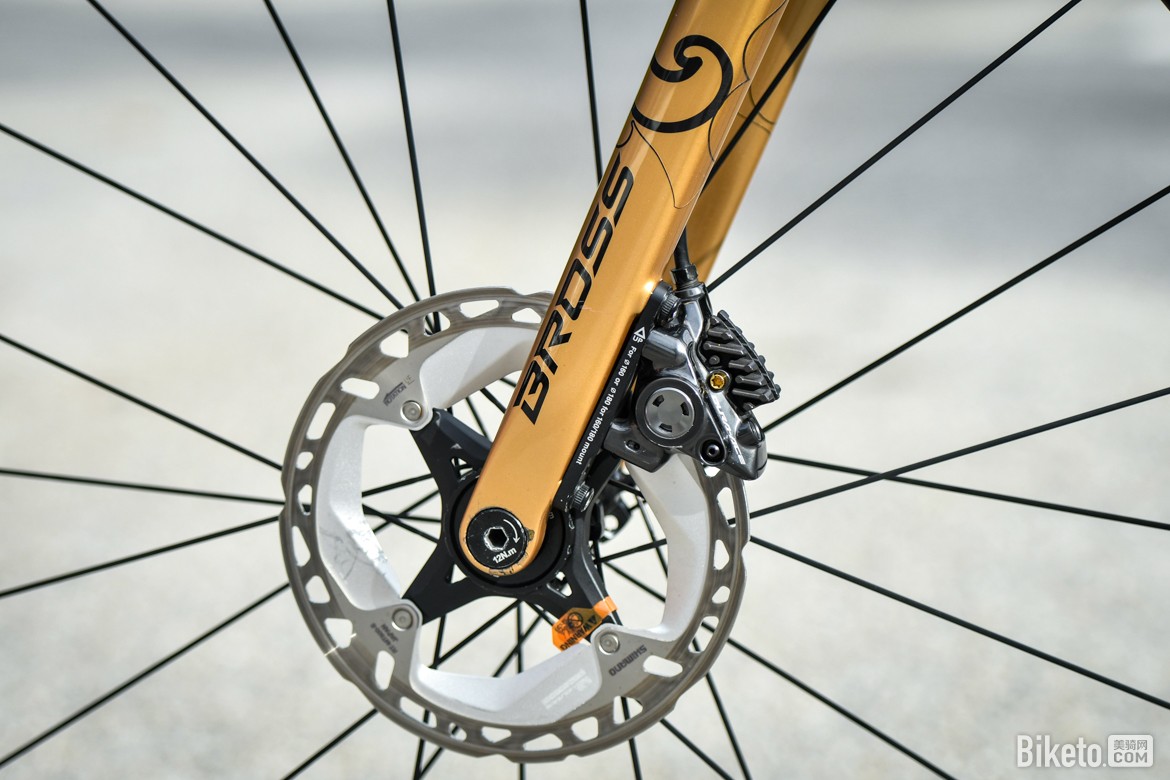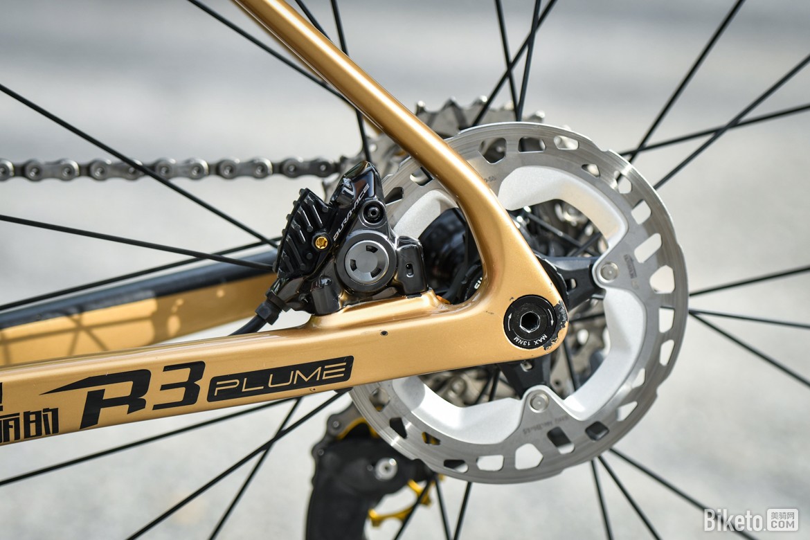 ▲刹车夹器上点缀着金色钛螺丝