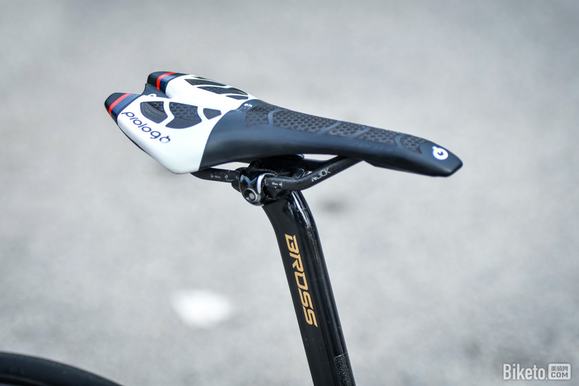 ▲车队每一名车手对操控组件的选择都不相同,白利君选用了Prologo长鼻坐垫