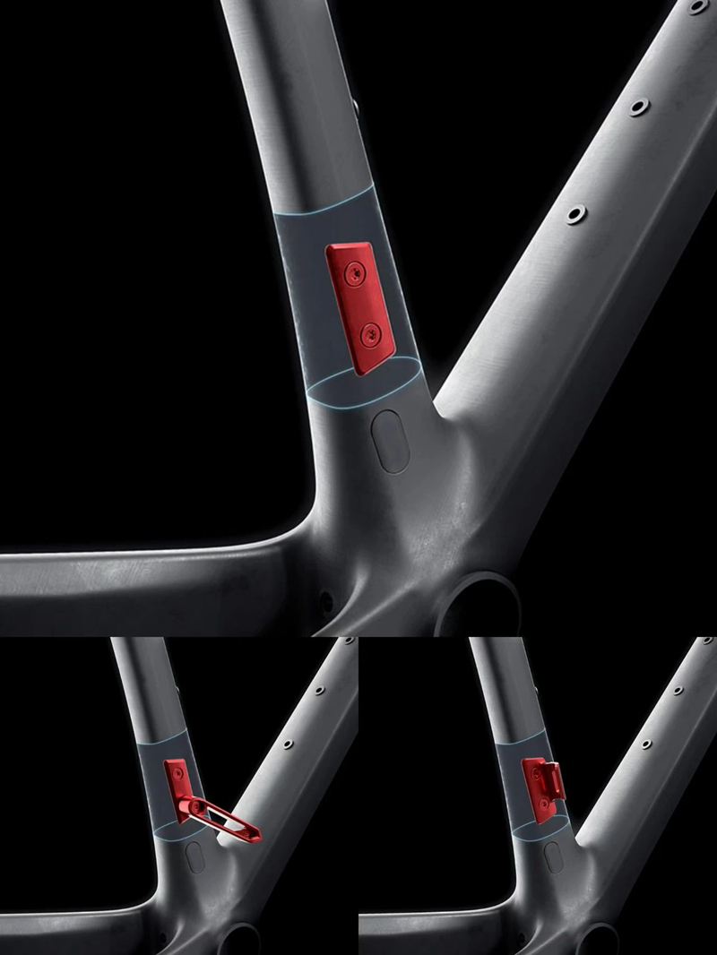 在扩展性和便利性上,ADDICT GRAVEL提供了足够的支持。丰富的安装点,特别是隐藏式挡泥板安装点,可以保持自行车的整体美观和流线型设计,也不影响挡泥板发挥其作用。