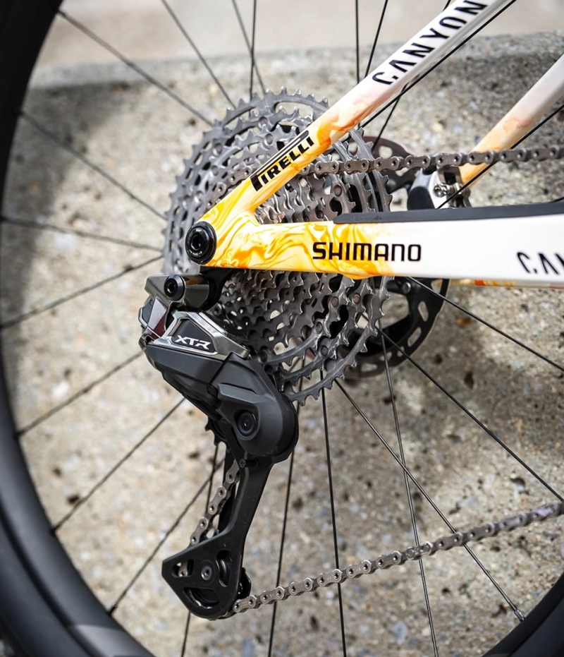这款战车的配置与范德普尔在莱热站世界杯夺冠时的设定基本一致,全面搭载禧玛诺最新技术,重点包括全新无线电子变速系统XTR M9200 Di2,以及同系列刹车与锁踏。