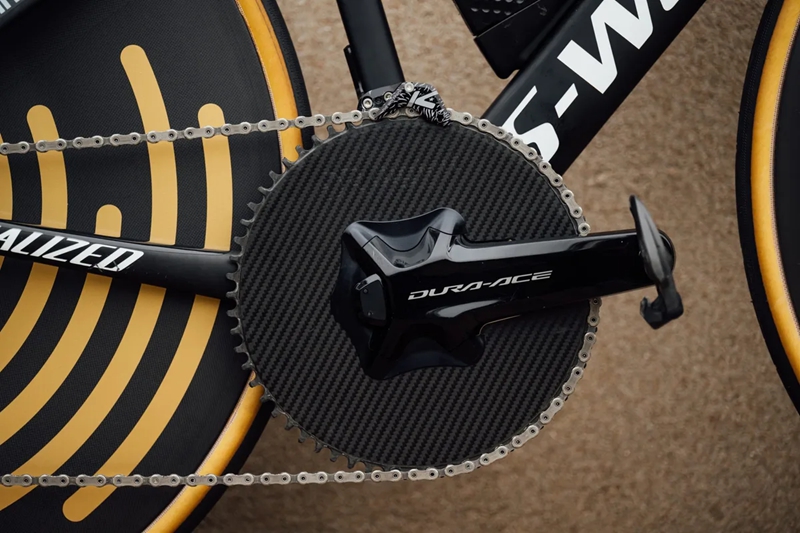 ▲全碳纤维后封闭轮加上高框前轮是今年TT世锦赛上非常流行的组合,Specialized仍未公布其新款Turbo Cotton TLR轮胎的任何官方细节