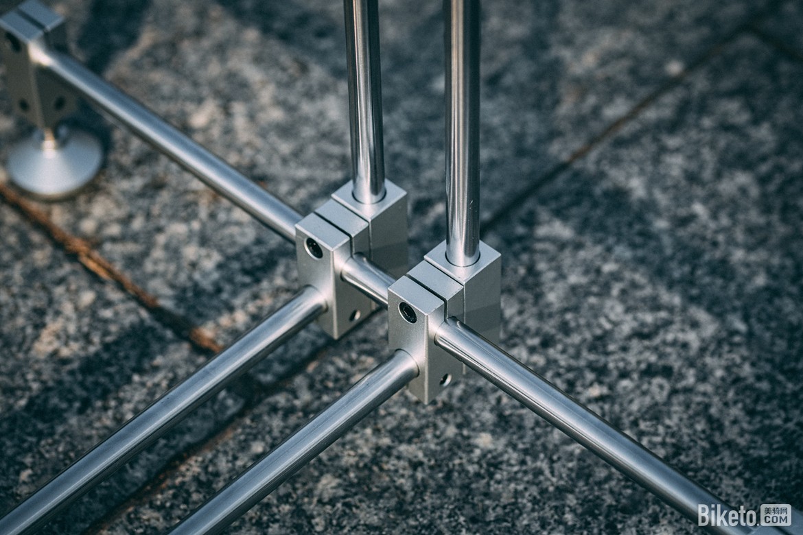 新一代 ROLPH 可调式不锈钢专业停车台在初代产品的基础上做了微小的升级,主要体现在材质打磨上,让光轴和连接头等零部件光泽度更高,棱角处理更整洁。