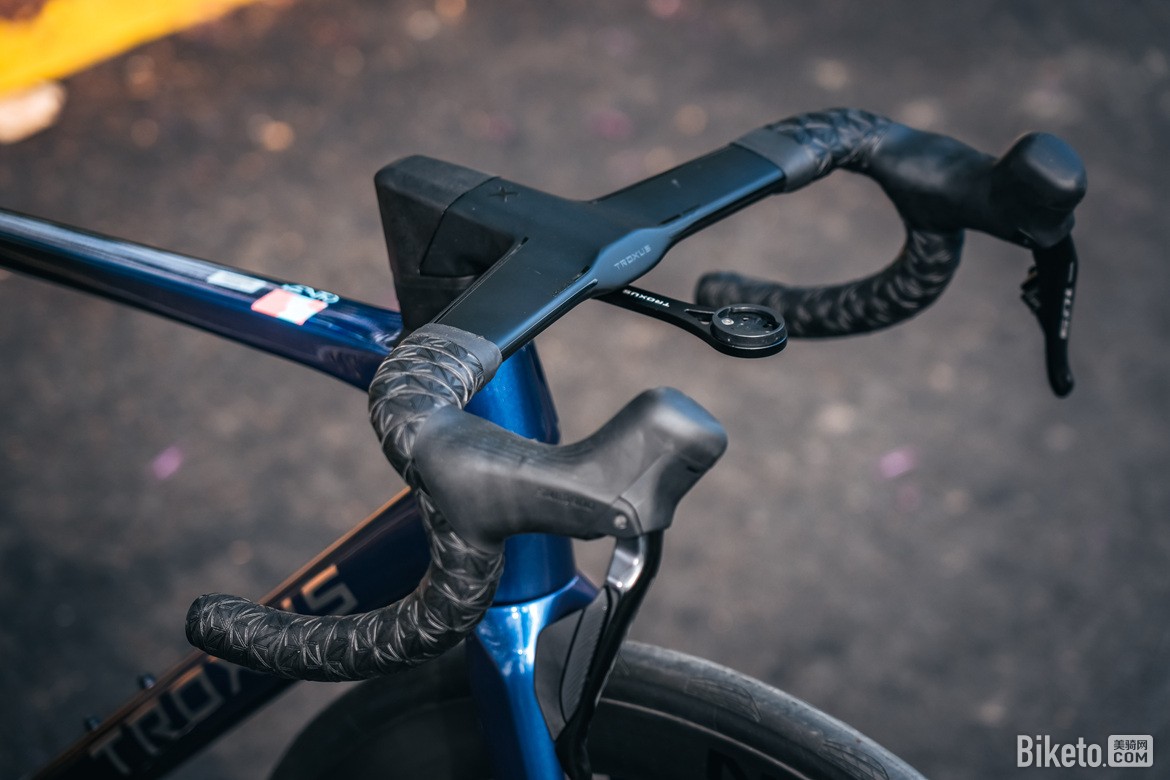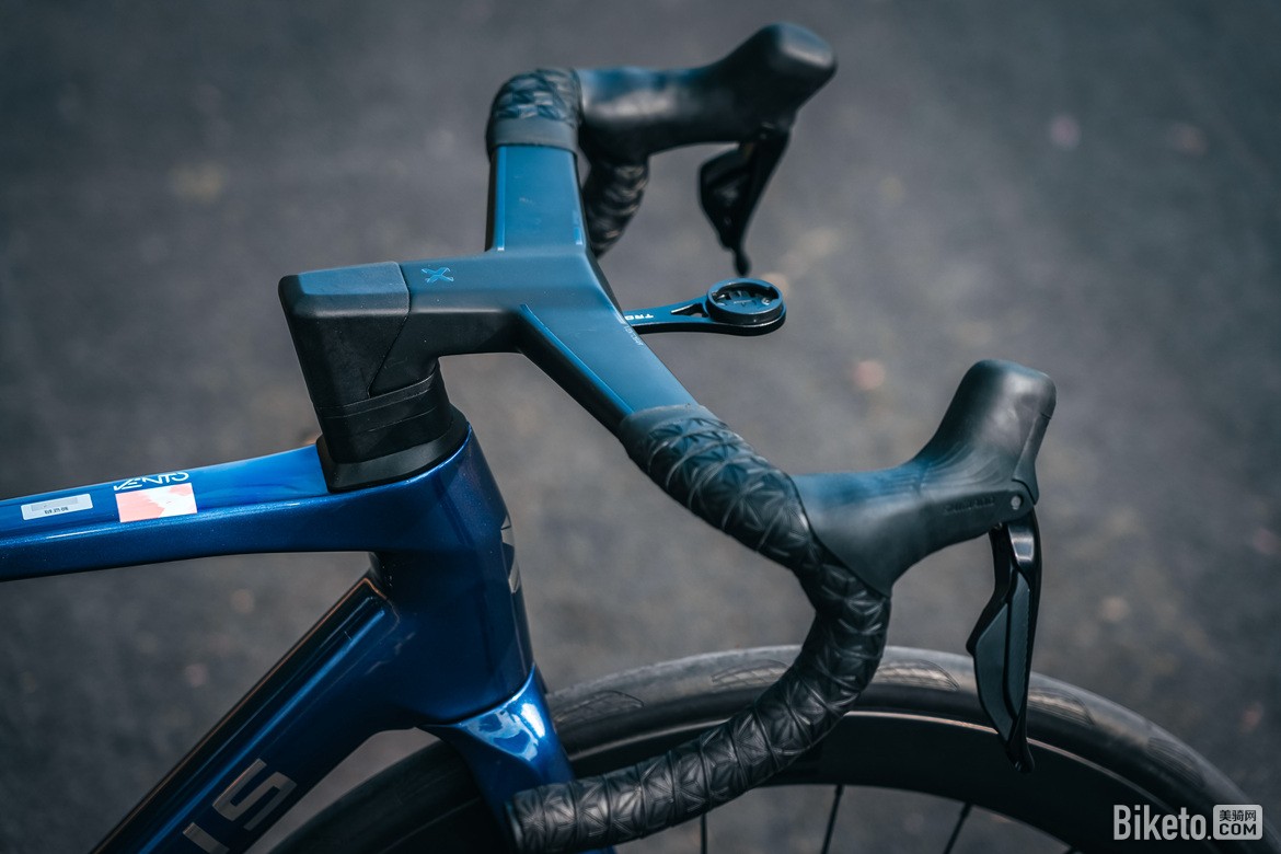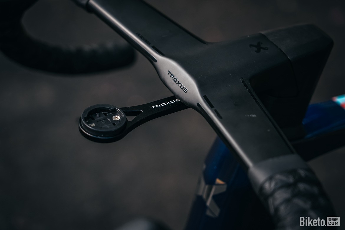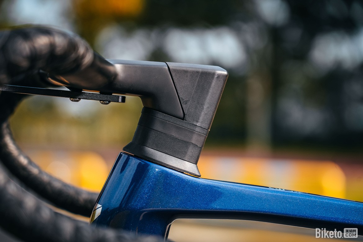 把立前方有个大平面造型,十分个性。刚开始小编还觉得增大了迎风面,会提高风阻。但后来仔细想想,没谁会不带码表骑车,搭配上码表的话,说不定这个造型还挺合适的。