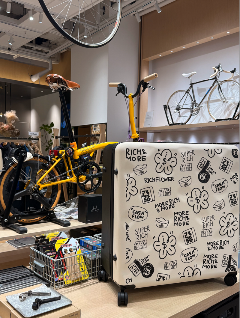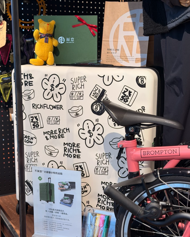 在发布不莱玫和“有钱花”的联名款小布托运箱后,包括北京上海还有众多车店的RE、AITA,深圳的Absocycle,沈阳的骑骑吧,天津的Cyclisme,石家庄的DoubleClub,青岛的03在内的多个BROMPTON官方经销商都参与了合作。