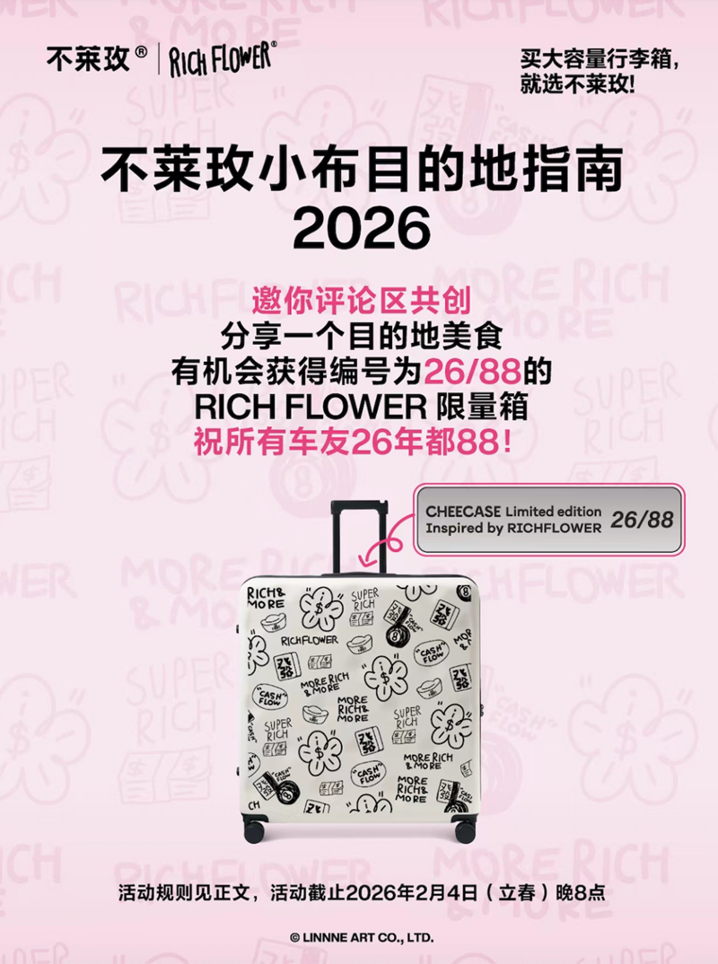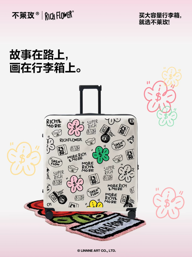 不莱玫和设计师IP“有钱花”合作联名,新年发布限量88只的小布托运箱