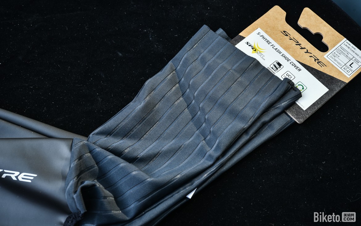 鞋套涂装仍然是S-PHYRE产品主打的简洁风格,外部是银色“S-PHYRE”大字,内侧则是黑色“SHIMANO”小字。