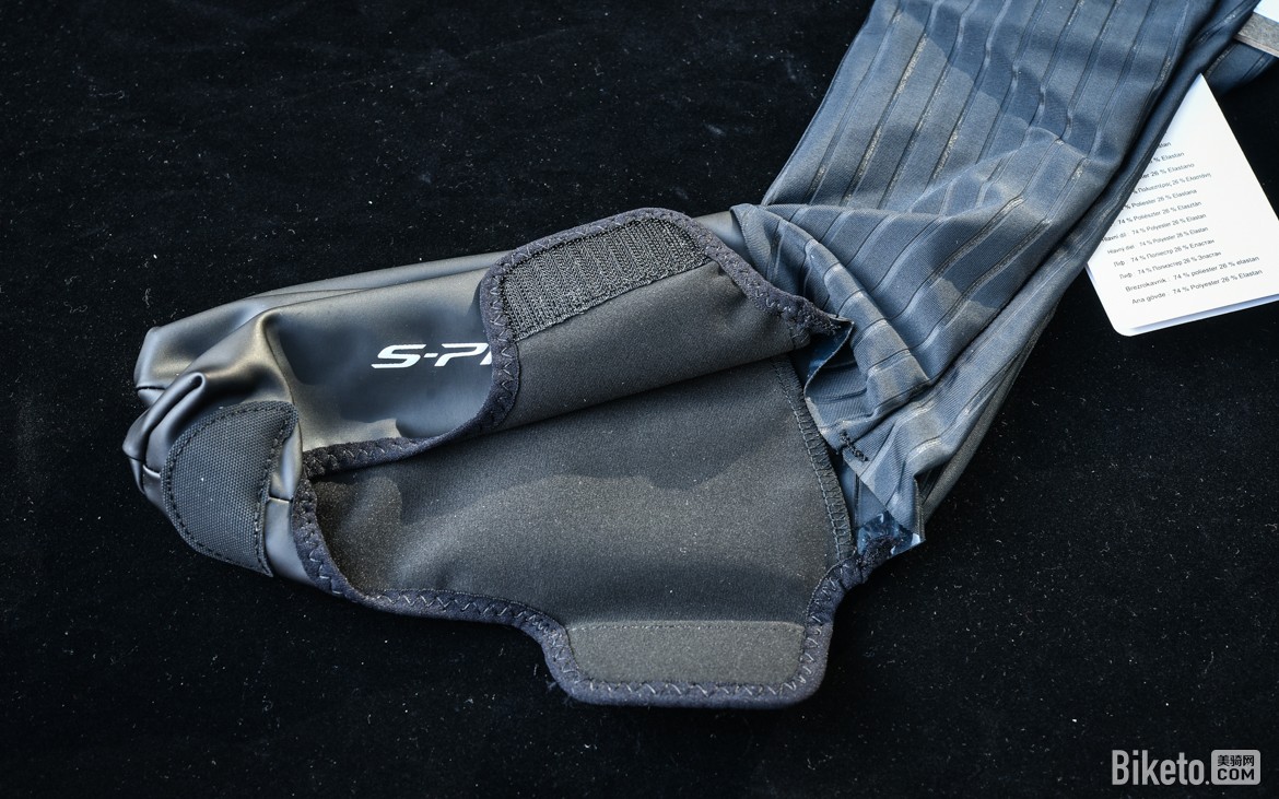 既然是主打气动的鞋套,所以必然是针对计时赛设计的产品。鞋套使用了长款设计,袜筒部分使用气动面料来优化风阻。这款鞋套分为全黑和黑白拼色两款,区别就是袜筒部位的颜色。