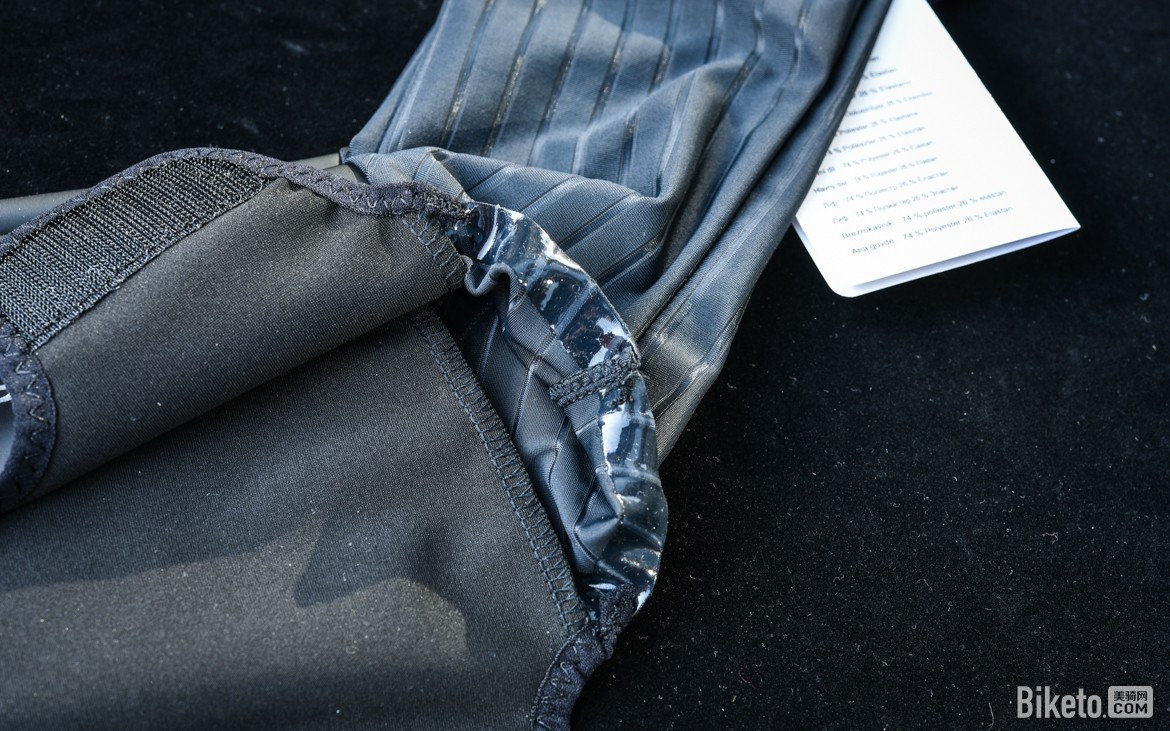袜筒就是现今竞赛骑行服上常见的条纹气动面料。
