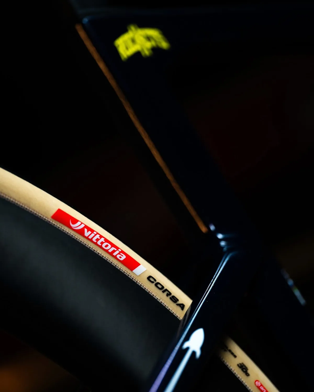 前叉的轮胎间隙似乎与上一代相同,图中车辆装配的是30mm的Vittoria Corsa轮胎。然而,前叉的轮廓有所增大,这可能会降低风阻。