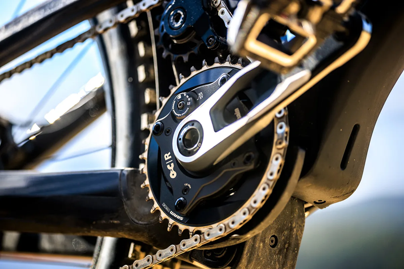 布鲁斯南在自行车中轴处使用了一个Ochain装置,以减少踩踏回击。该品牌去年被SRAM收购,其设计看起来已经巧妙地融入了SRAM的体系中。