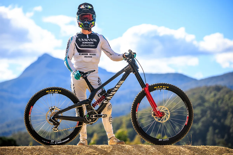 布鲁斯南骑乘的是Canyon的Sender CFR,这是该品牌的全碳纤维、高转点下坡自行车。