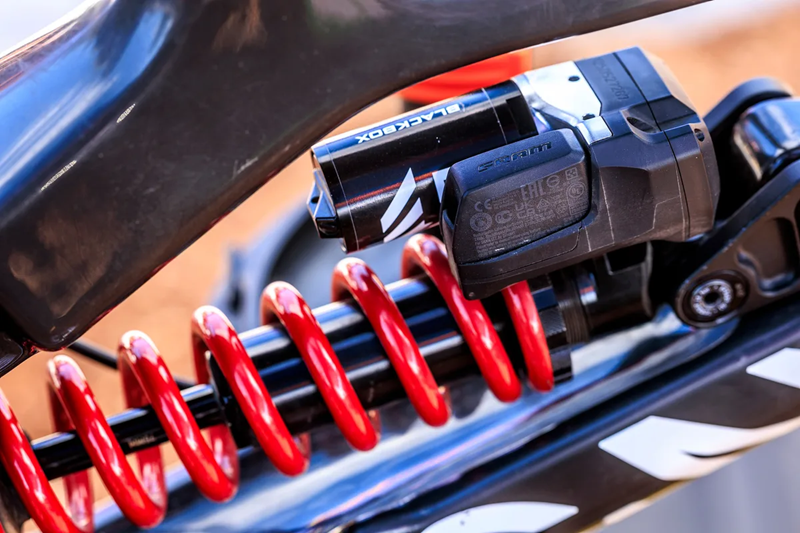 自上赛季中期以来,布鲁斯南一直在使用一款未发布的RockShox Boxxer前叉和Vivid后避震器。然而,前叉上已不再有表明是RockShox和SRAM原型的"Blackbox"标签,这意味着我们可能在不远的将来就能在货架上看到它。