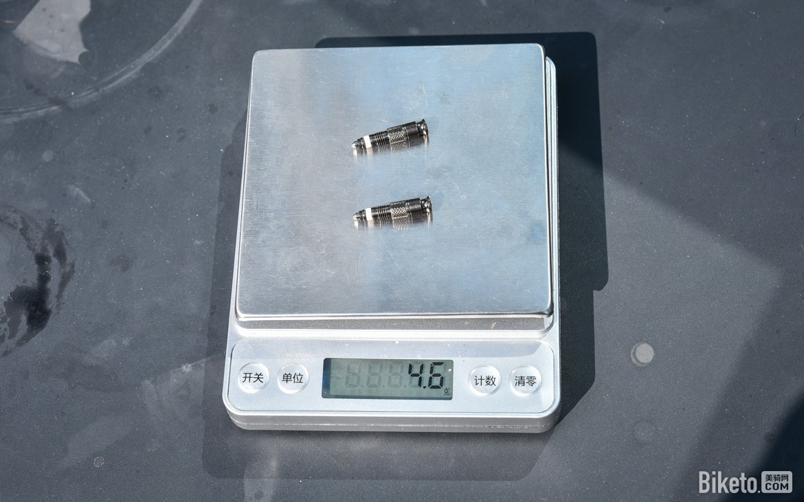 接下来自然少不了上称环节,因为CLIK气门体积较大,还是钢材质的,所以重量一对还是要4.6克的。