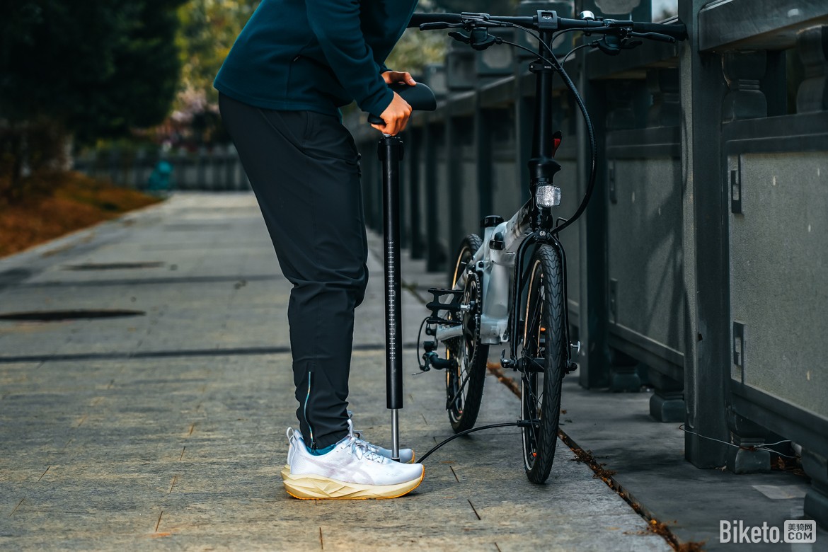 作为定位户外骑行的车型,怎么能没有“应急措施”,还是经典的大行座管打气筒,并且在座管外侧以涂装明确提示,避免出现骑了几年都不知道大行的折叠车还有这个“隐藏技能”。