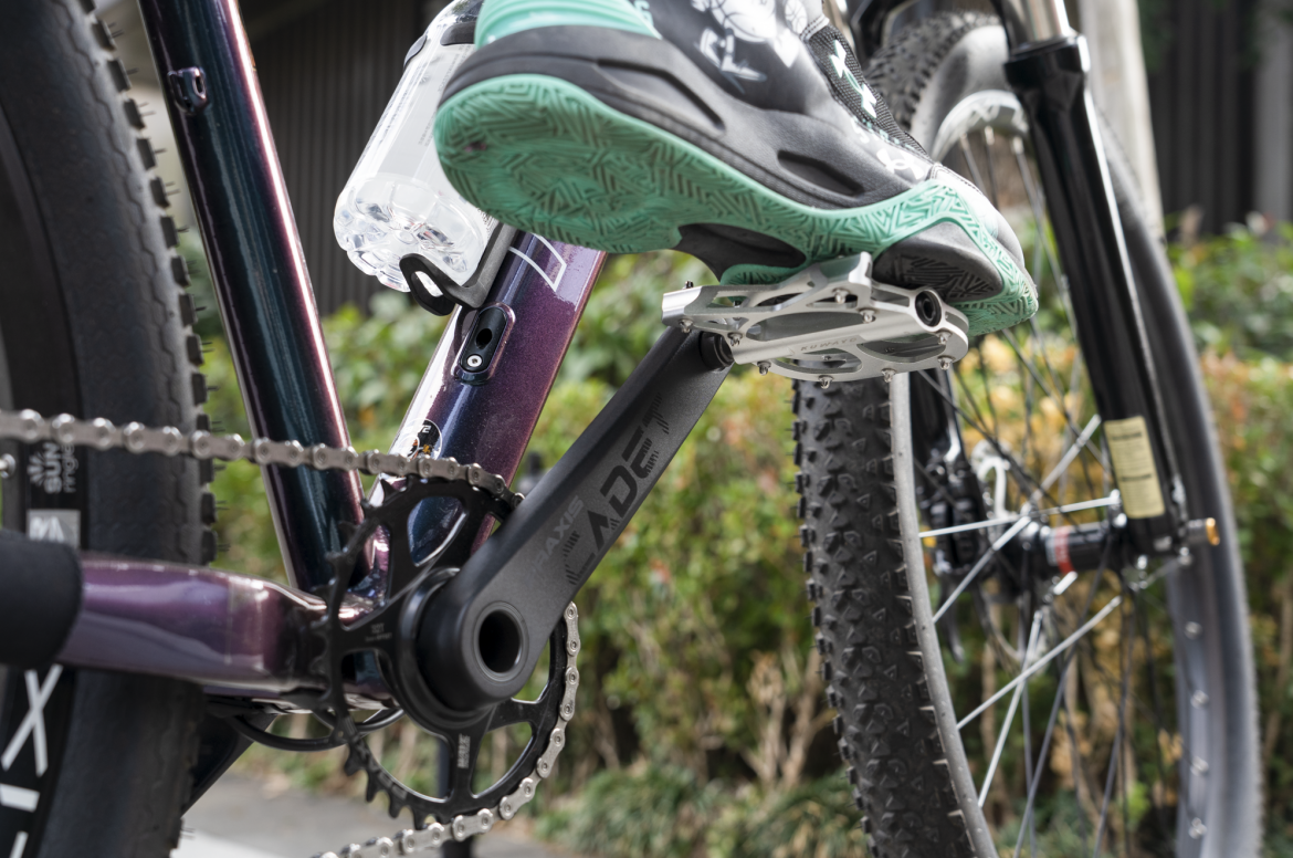 堂弟目前上六年级身高一米六,身体柔韧性中等,跨高逆天是个大长腿,和我沟通有三点需求。第一是要求是大宽胎搭配软叉想要劈楼梯,第二要求变速齿比要广,第三想要整车黑蓝配色或者黑紫配色。