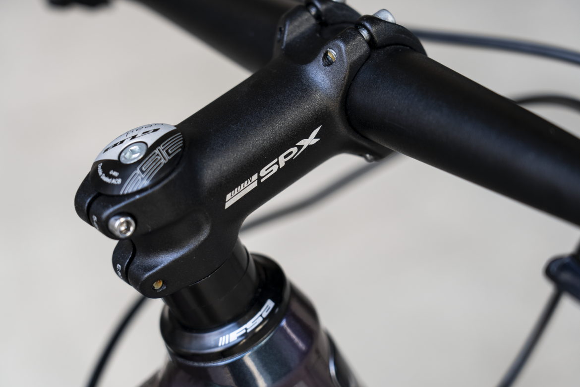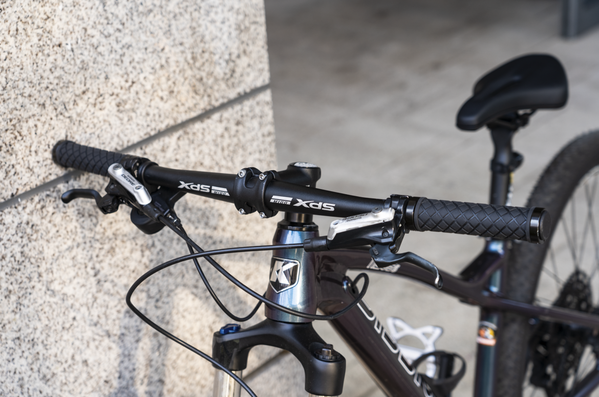 车架头管上41.8mm下52mm,是个椎管车架,但是我手上是有一根直管的三拓xcr前叉,所以我“反向升级”给换了一套碗组直接上车。xcr是三拓的一款入门级油簧叉,拥有锁死功能和回弹速度调节2大功能(回弹调节效果可忽略不计),俗话说粗就是好,长就是强,xcr32其中32是指管径,对比当下管径已经不算粗了,但是这款前叉的稳定性在我印象中是非常的稳,我玩车的第一根前叉就是xcr,从2015年-2018年期间经历过各种考验包括我改行程,除了尘封油封比较垃圾外,基本没出过毛病,给新手入门我觉得是个非常好的选择。