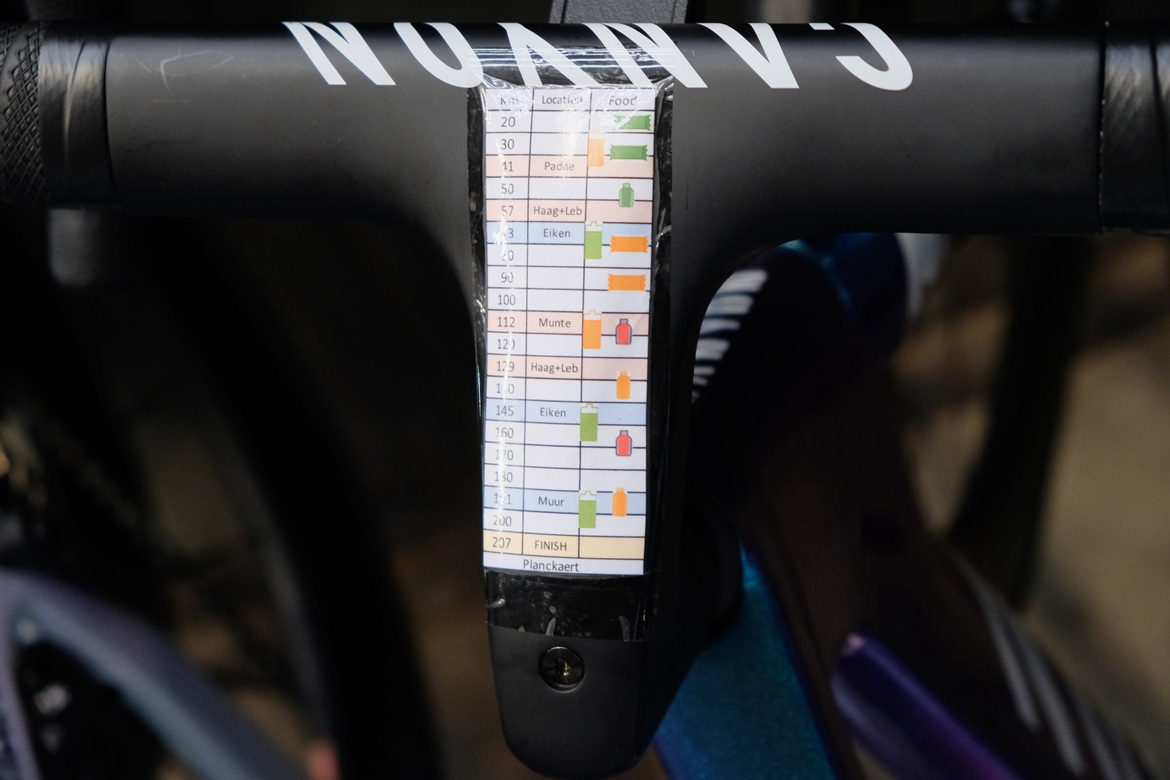 为帮助车手执行补给计划,部分车队会在车把上贴上特殊贴纸。