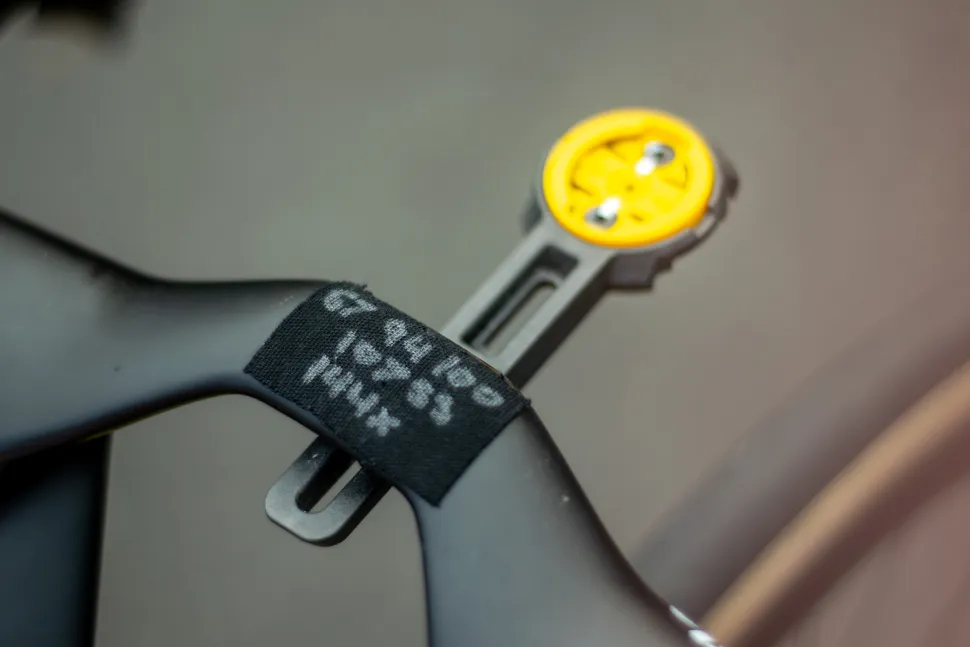 布伦南凭借165mm曲柄、前后轮不同框高的轮圈、54-41T的盘片以及30mm宽的轮胎夺冠。他车把上的把立细节也颇具特色,外媒特意拍下了下方这张特写。