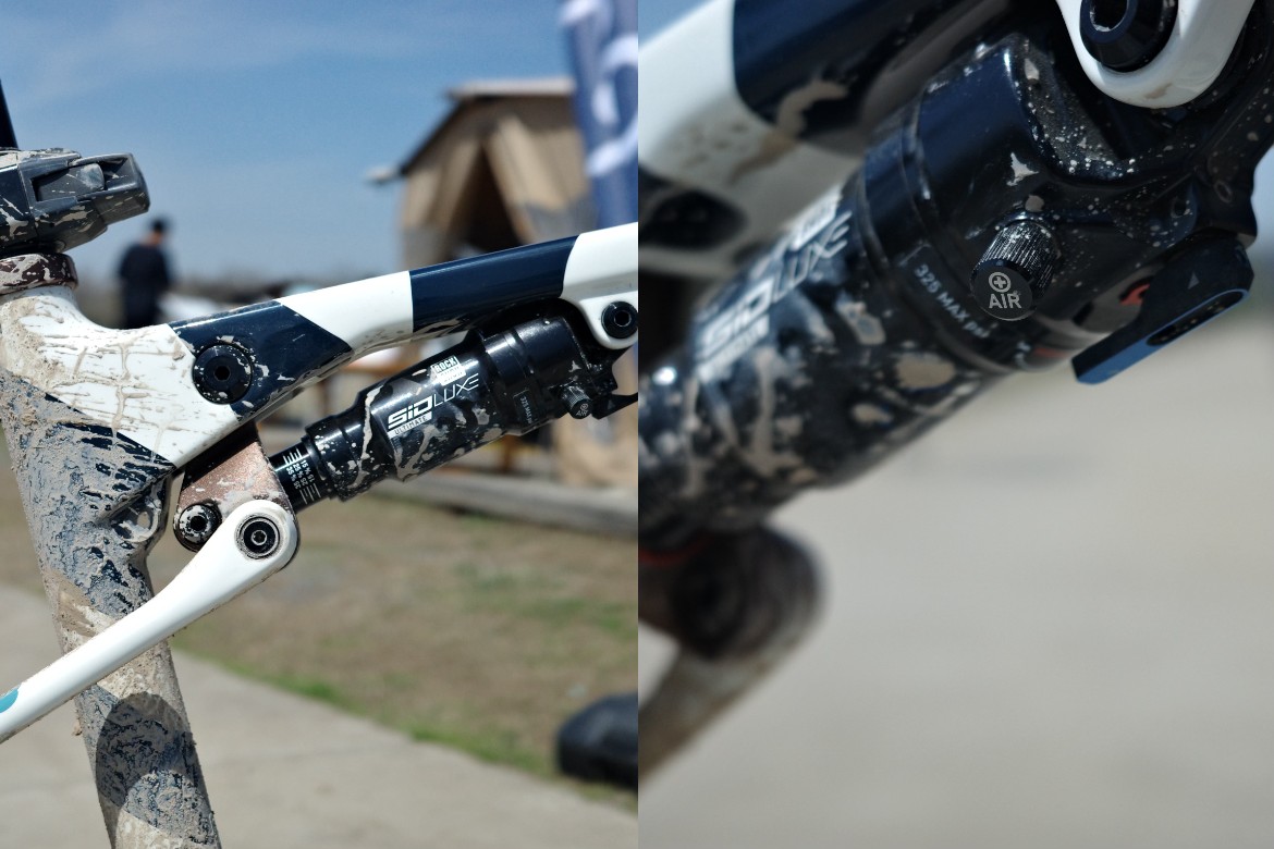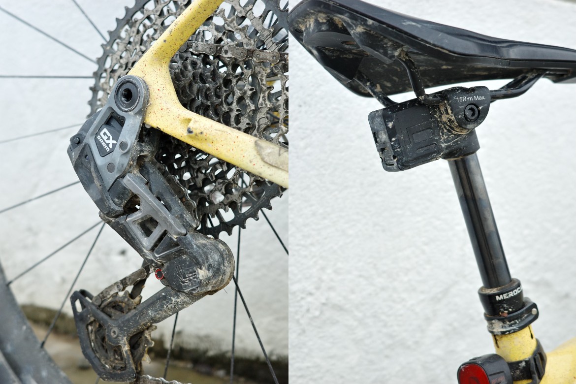 是什么样的车会有四块电池?答案就是这台来自 TREK 的弯把Supercaliber。Supercaliber不是传统意义上的软尾,Trek官方对这台车的定位是一辆 “会避震的硬尾”。这台车提供 80mm 的前避震行程和 110mm 的后避震行程。全车四块电池分别服务于前叉、后避震、电子变速与升降座管。