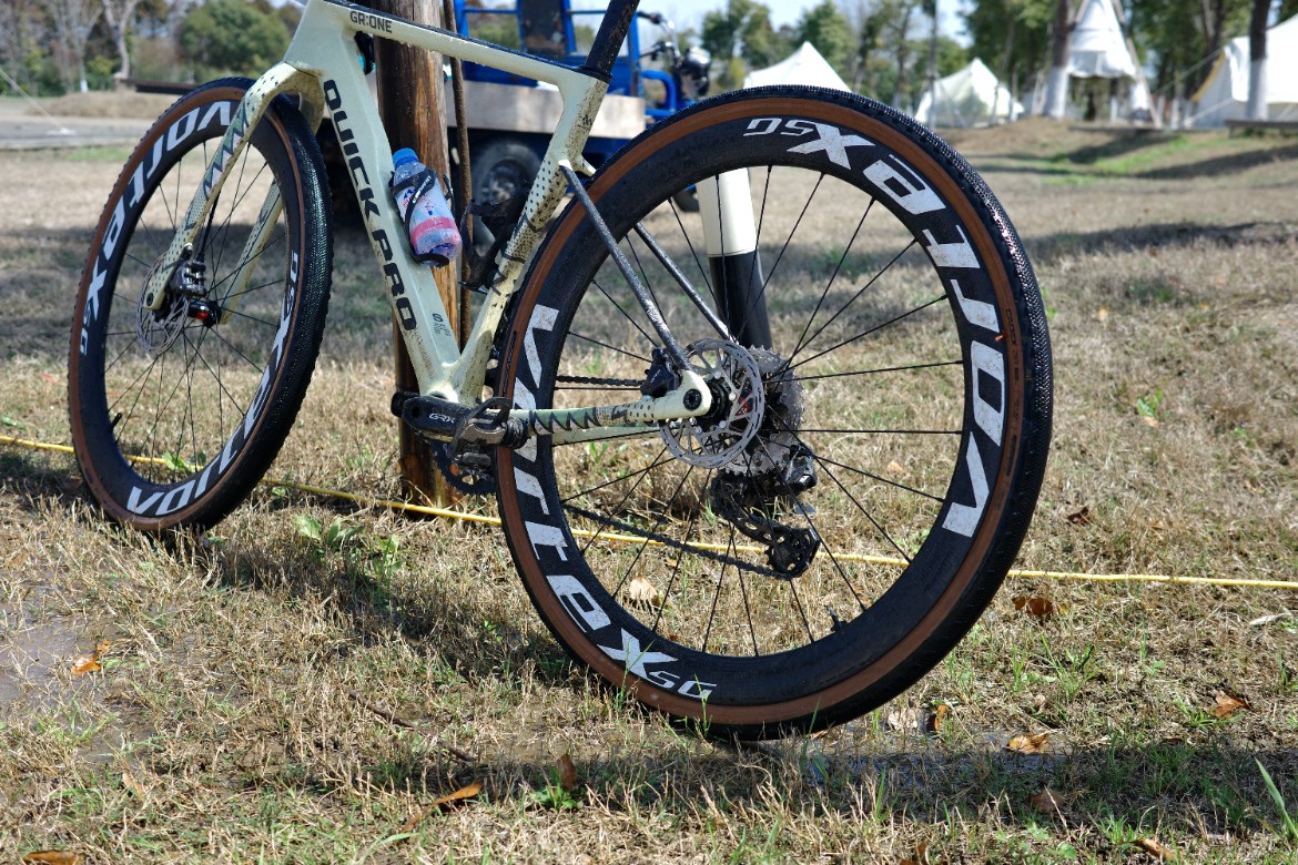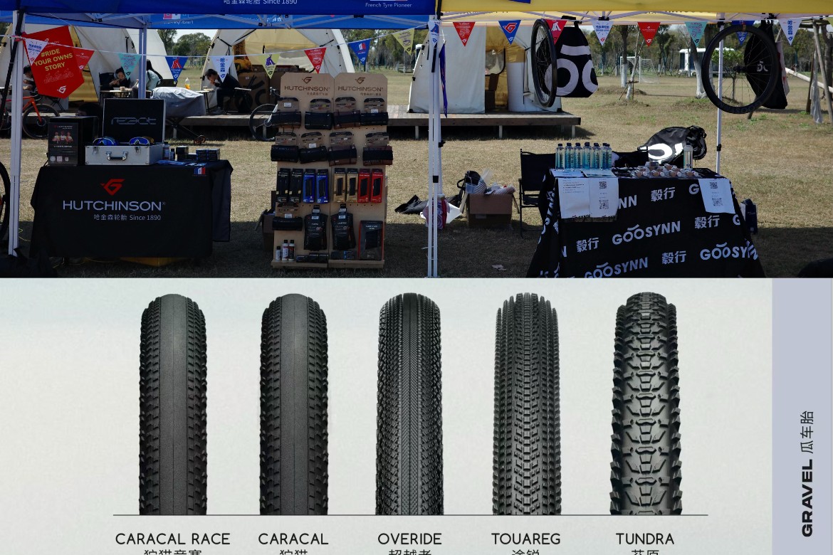 赛事的技术支持方哈金森轮胎,带来了多种 Gravel 的外胎给选手选择。对于崇明的道路非常适合选择前“超越者”后“狞猫”的组合。