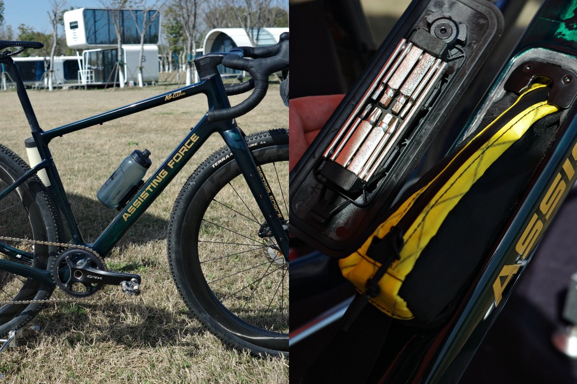 嘉年华的参展商 AF bicycles的战车AF01SSL,下管储物盒内集成了组合工具和储物袋,并带有快拆机构。