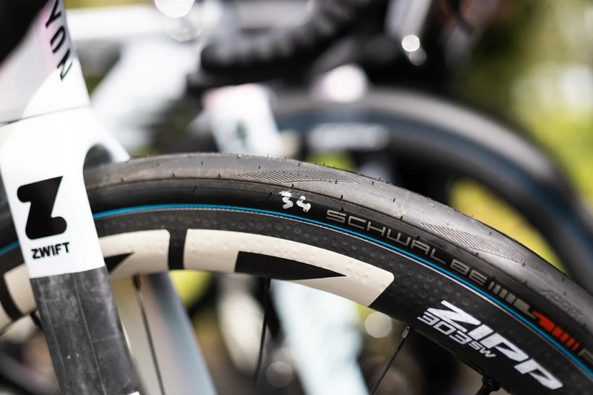Canyon–SRAM女队甚至配备了Schwalbe G-One Speed——该品牌专为高速骑行设计的瓜胎。