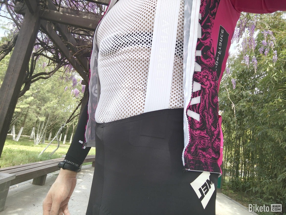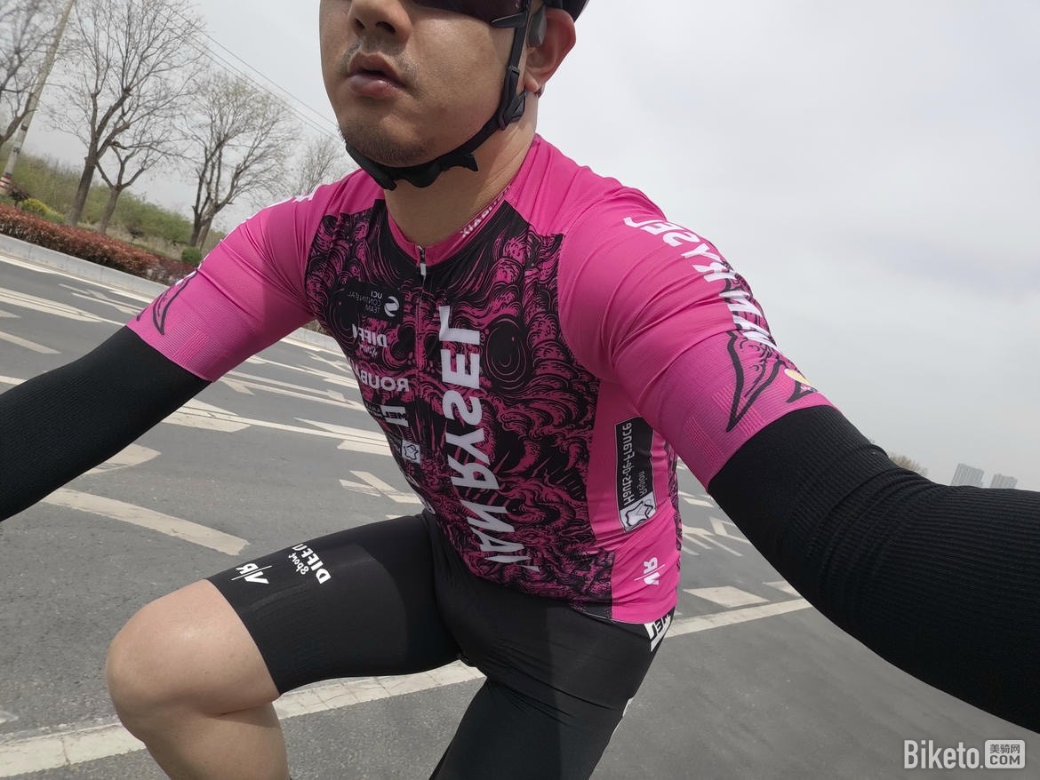 衣服下摆偏长,在腹部会有些堆积,加上偏厚的下摆,对我这种肚子上有赘肉的车友来说腹部会有些轻微的堆汗。