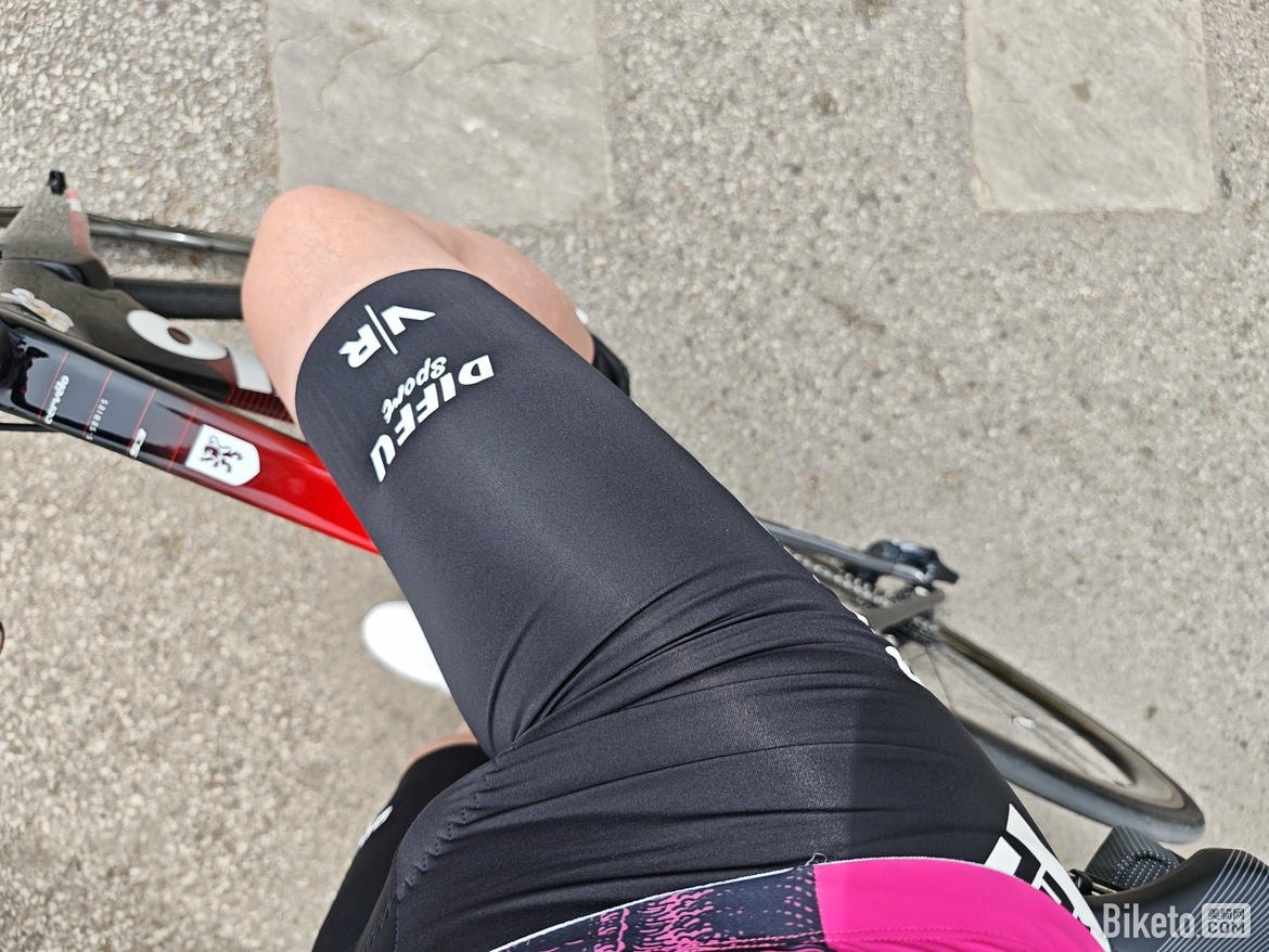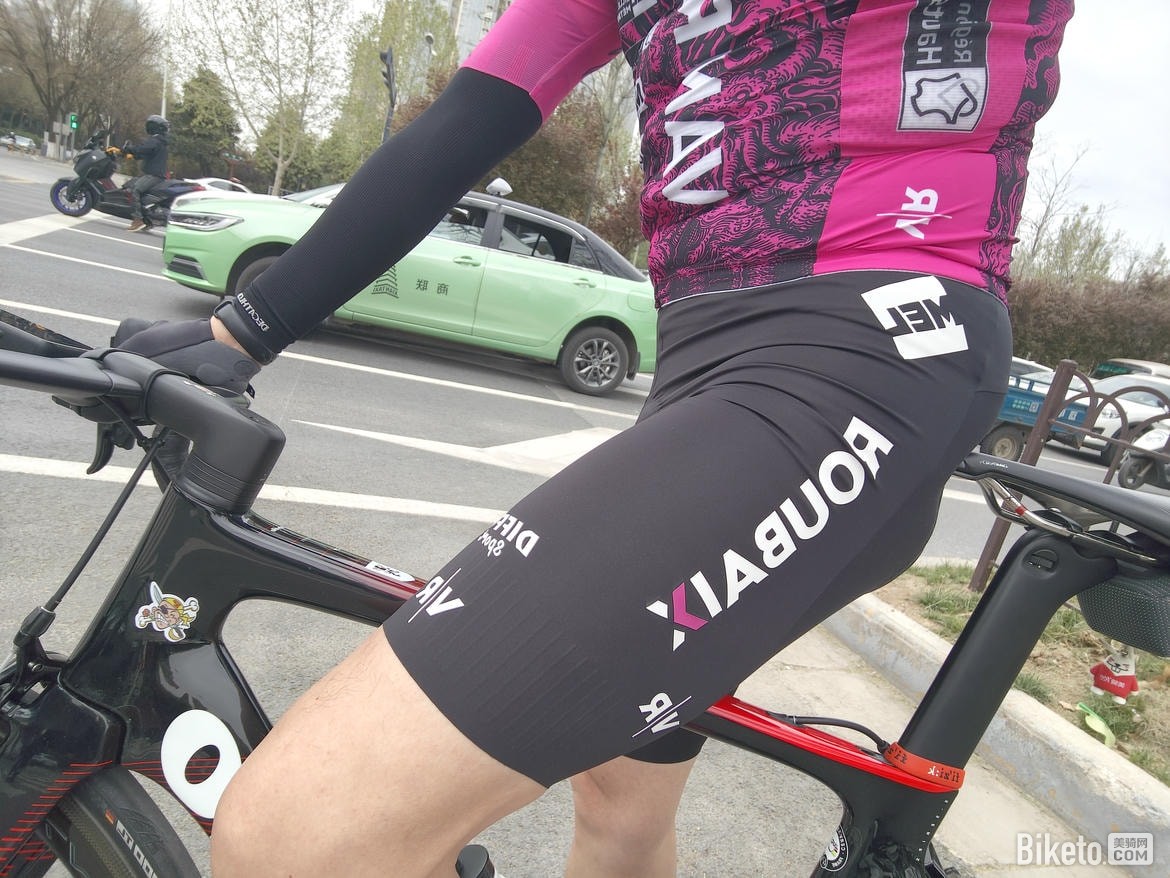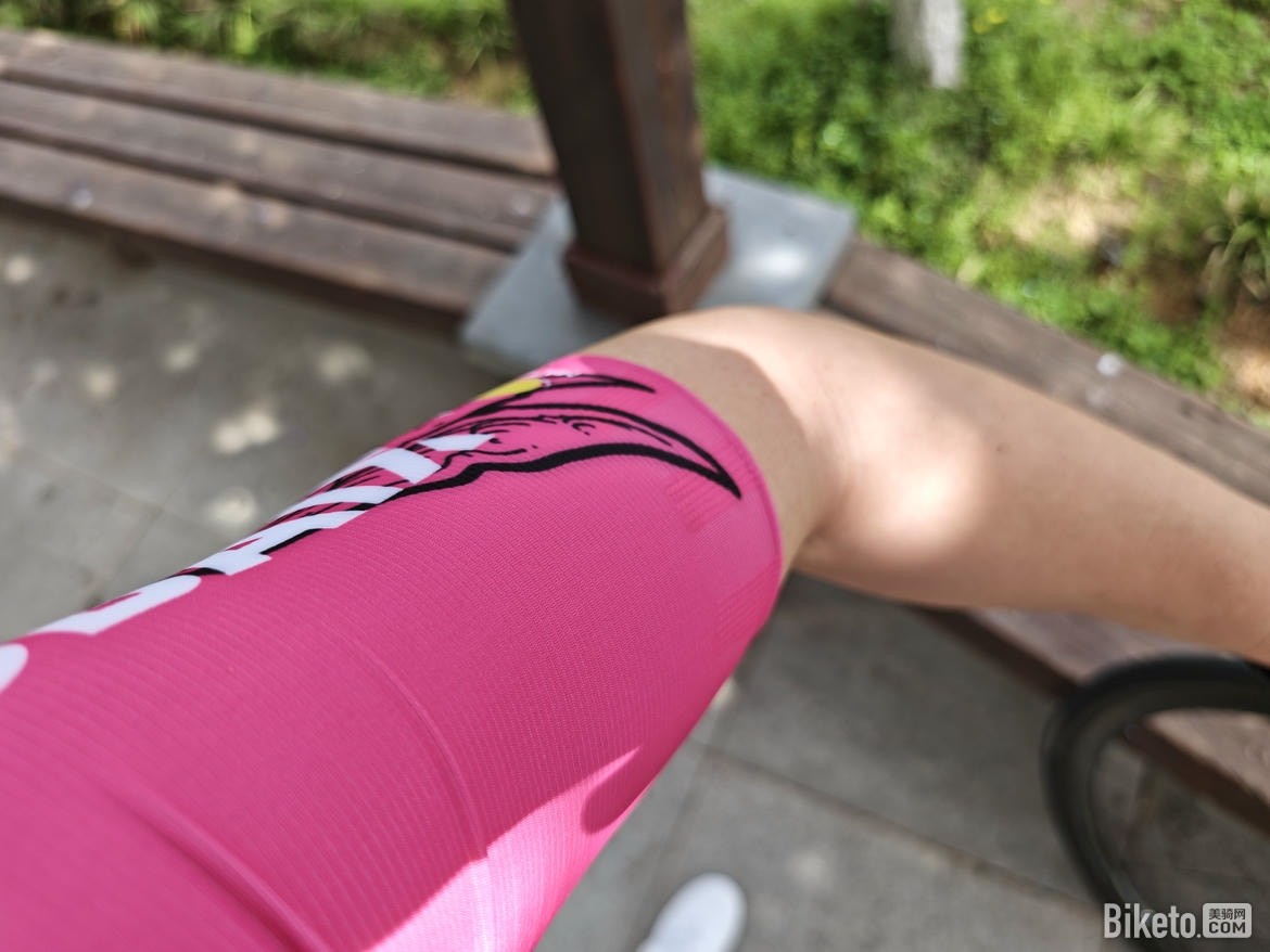腿部高弹的面料使得大腿部分的包裹性和支撑性都非常好。裤脚部分的防滑条也能在激烈摇车的动作中把裤子牢牢固定住,同时并不会因为防滑条导致腿部的汗水无法排出。