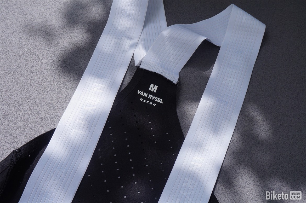 背带使用了单独的弹性织物背带,白色的背带比之前的黑色背带更适合搭配浅色骑行服。背带整体比之前的更薄更软,弹性也更好。